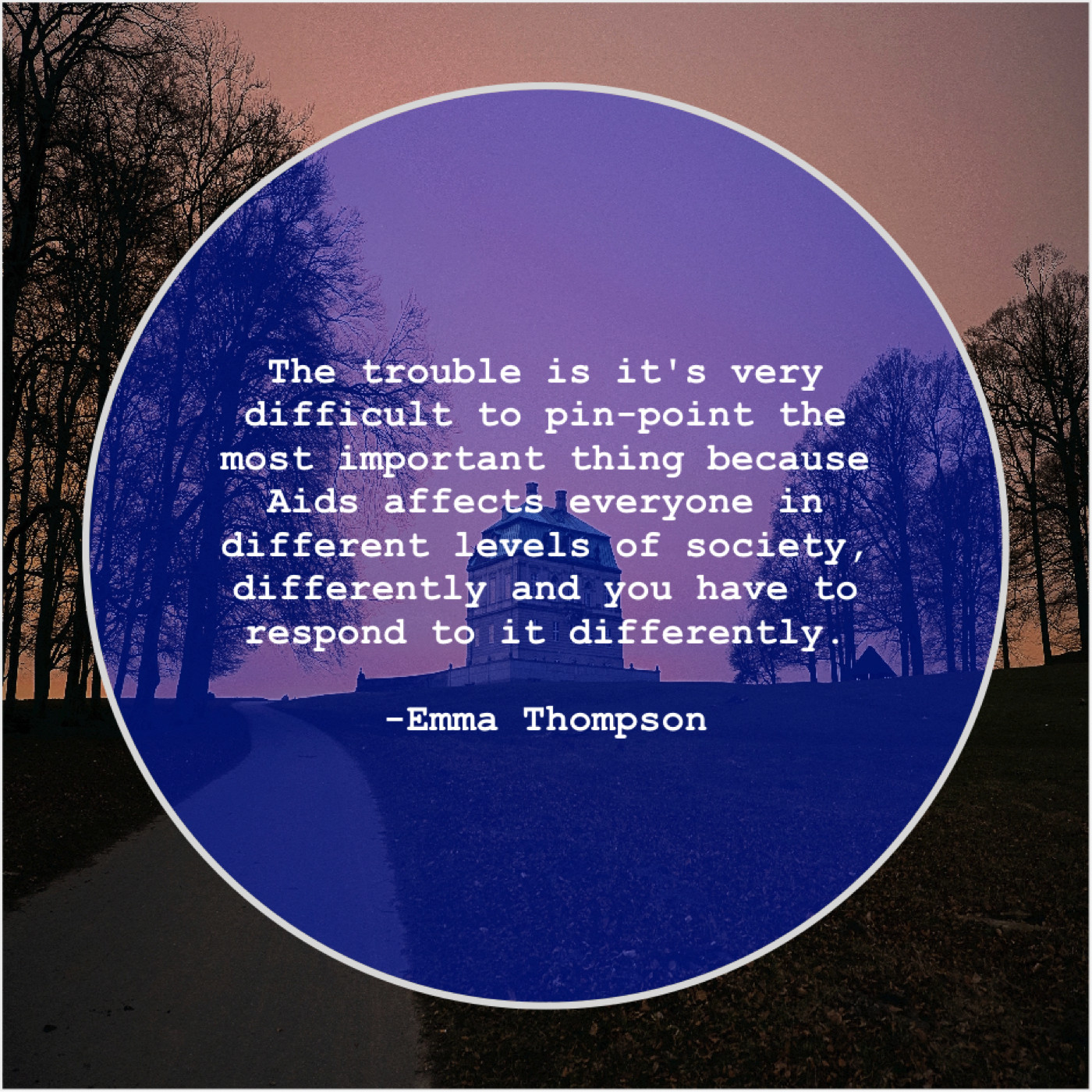 Emma Thompson Emma Thompson – The trouble is it’s very… July 15, 2019 admin “The trouble is it’s very difficult to pin-point the most important thing because Aids affects everyone in different levels of society, differently and you have to respond to it differently.”-Emma Thompson