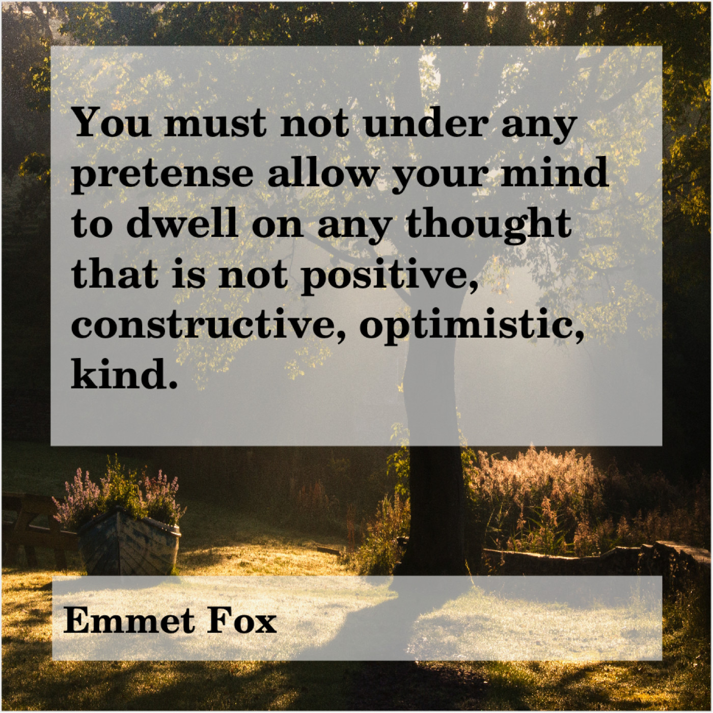 “You must not under any pretense allow your mind to dwell on any thought that is not positive, constructive, optimistic, kind.”