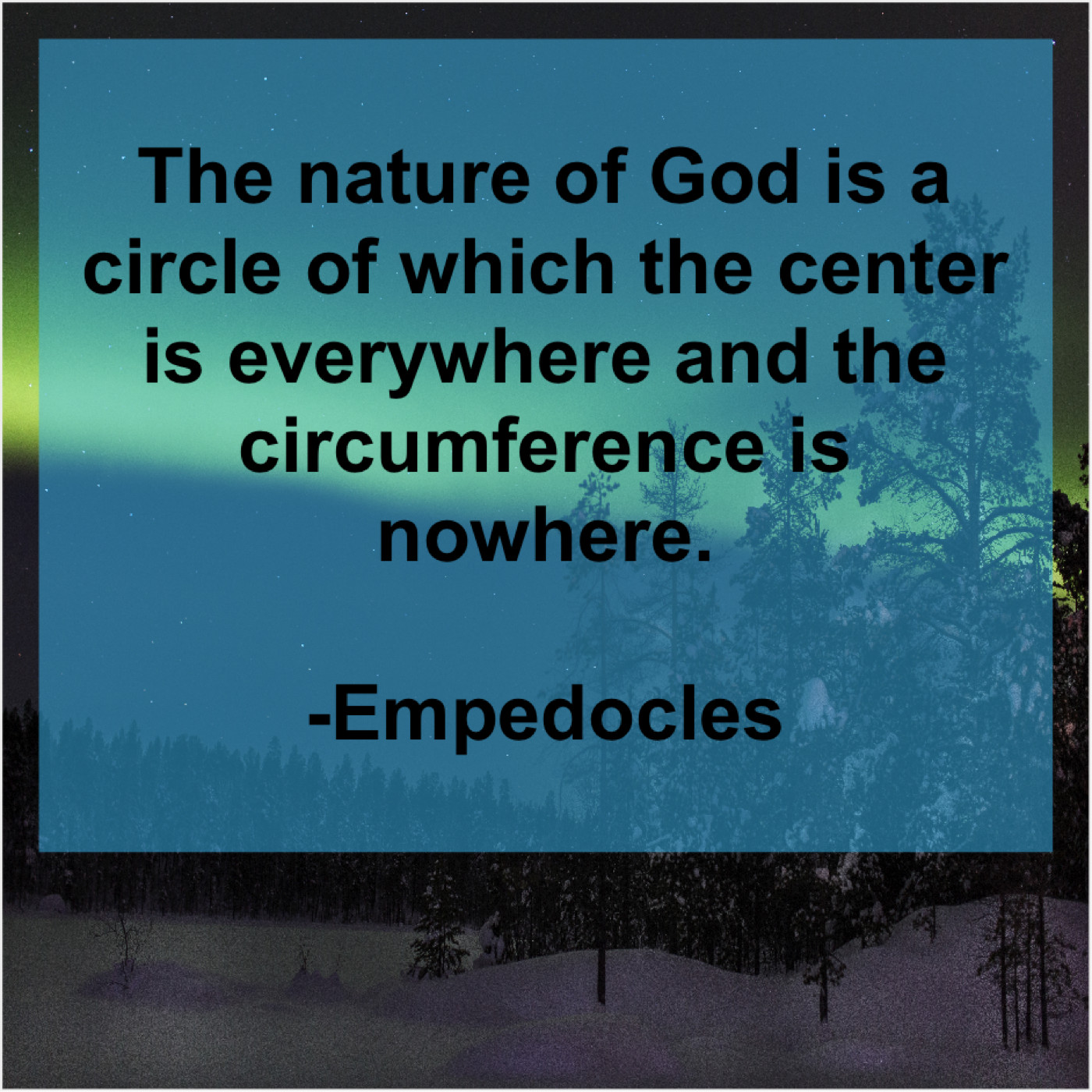 Empedocles Empedocles – The nature of God is… March 18, 2019 admin “The nature of God is a circle of which the center is everywhere and the circumference is nowhere.”-Empedocles