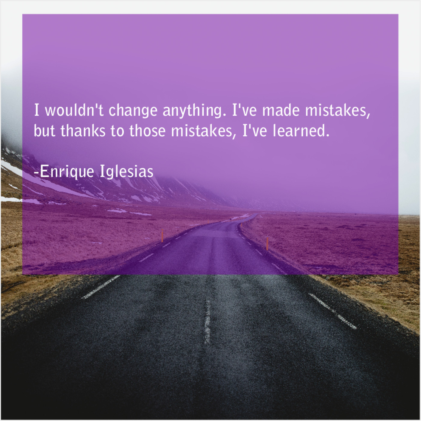 Enrique Iglesias Enrique Iglesias – I wouldn’t change anything. I’ve… February 5, 2019 admin “I wouldn’t change anything. I’ve made mistakes, but thanks to those mistakes, I’ve learned.”-Enrique Iglesias