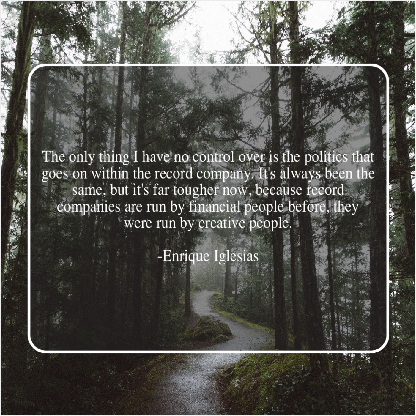 “The only thing I have no control over is the politics that goes on within the record company. It’s always been the same, but it’s far tougher now, because record companies are run by financial people before, they were run by creative people.”