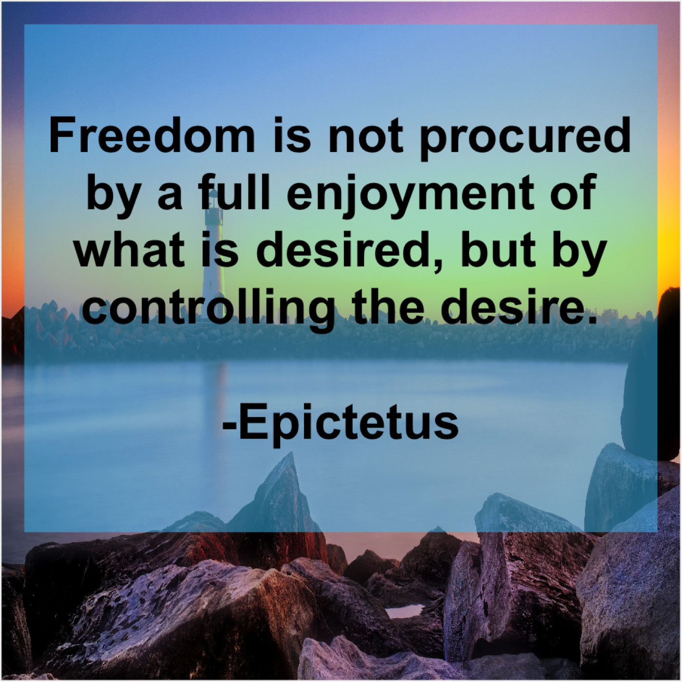 Epictetus Epictetus – Freedom is not procured by… August 28, 2019 admin “Freedom is not procured by a full enjoyment of what is desired, but by controlling the desire.”-Epictetus