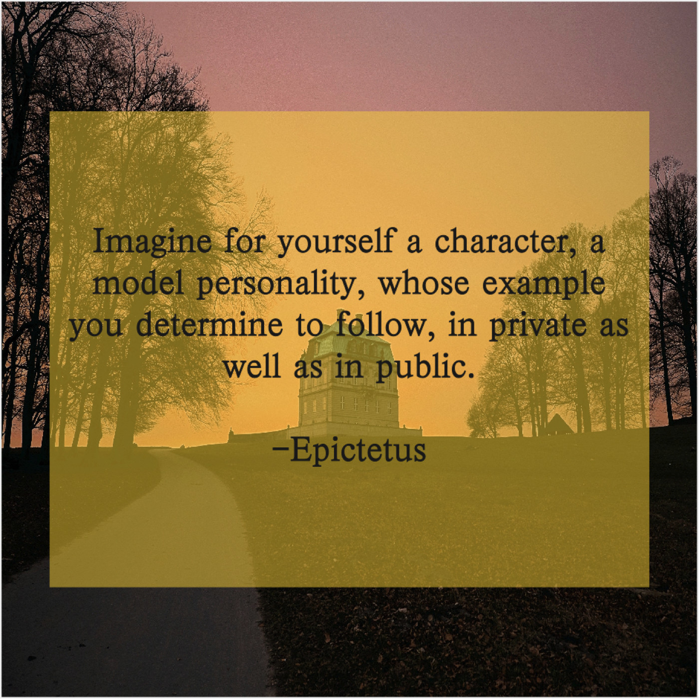 Epictetus Epictetus – Imagine for yourself a character… December 13, 2018 admin “Imagine for yourself a character, a model personality, whose example you determine to follow, in private as well as in public.”-Epictetus