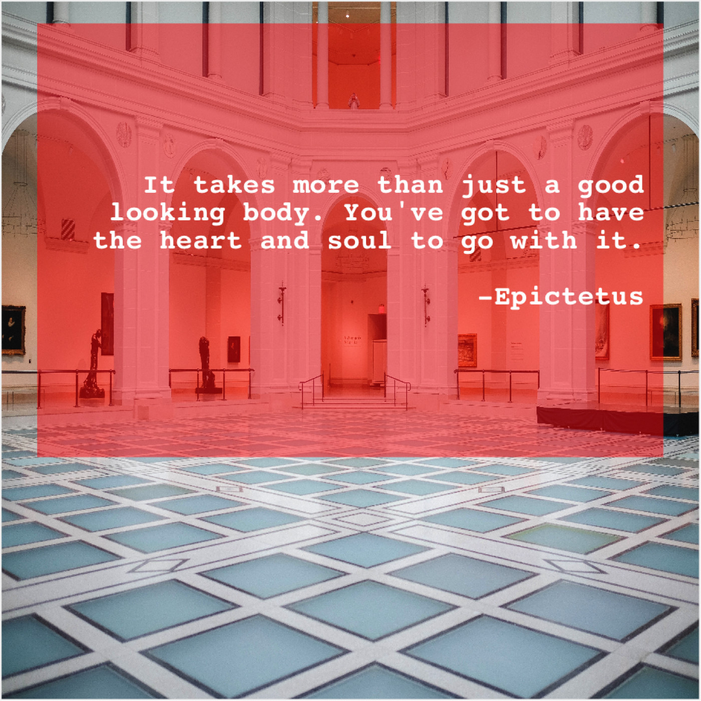 Epictetus Epictetus – It takes more than just… August 12, 2019 admin “It takes more than just a good looking body. You’ve got to have the heart and soul to go with it.”-Epictetus