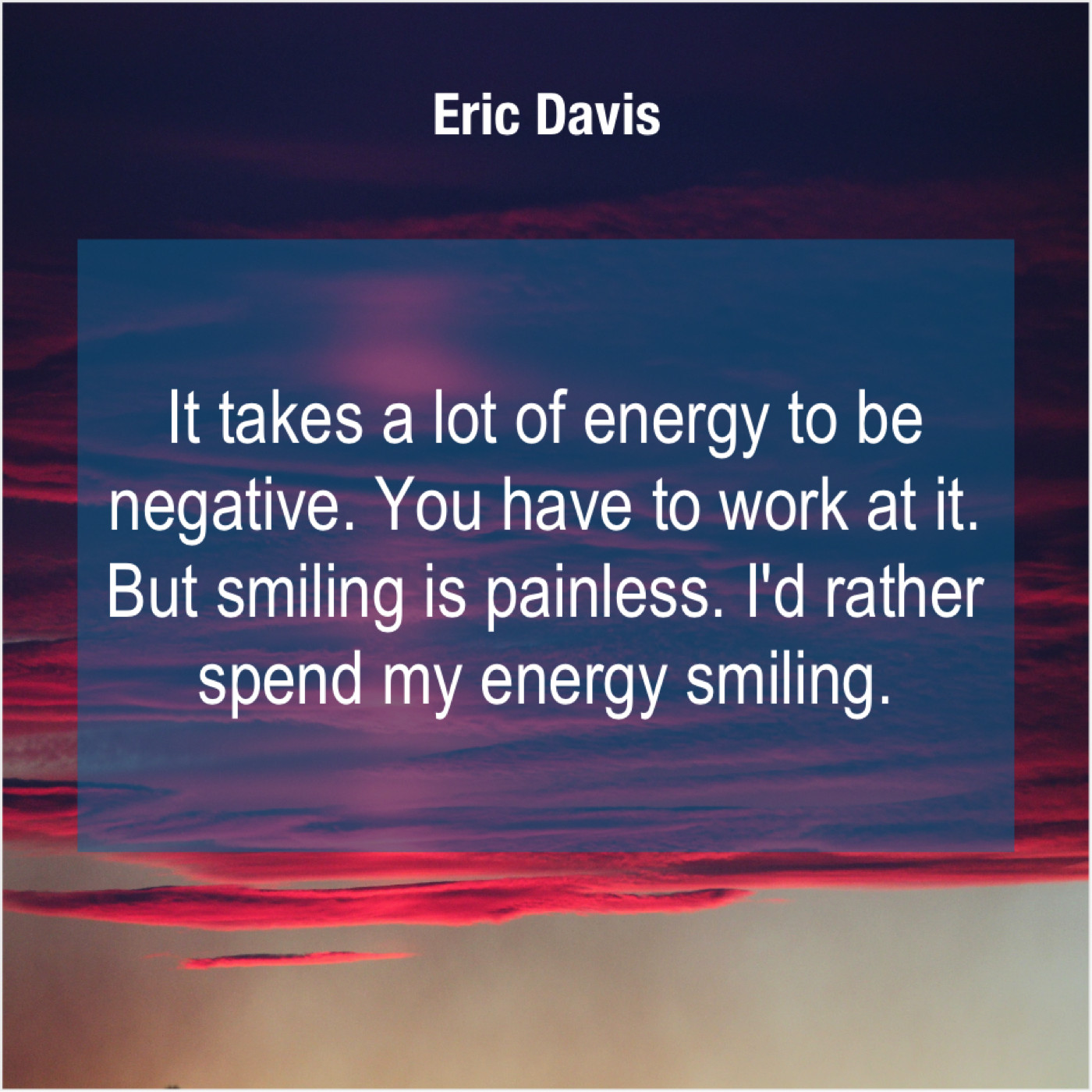 Eric Davis Eric Davis – It takes a lot of… January 21, 2019 admin “It takes a lot of energy to be negative. You have to work at it. But smiling is painless. I’d rather spend my energy smiling.”-Eric Davis