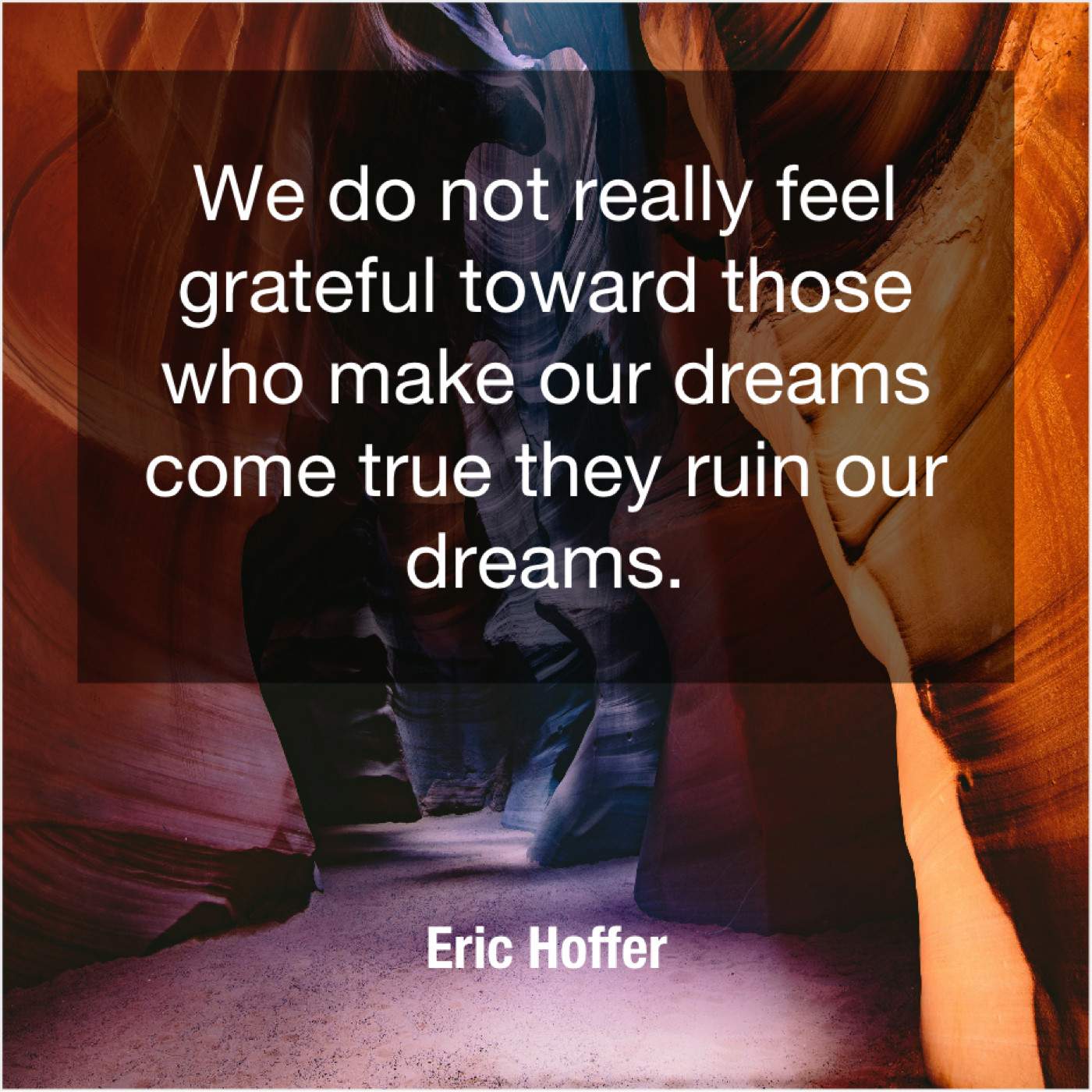 Eric Hoffer Eric Hoffer – We do not really feel… June 23, 2019 admin “We do not really feel grateful toward those who make our dreams come true they ruin our dreams.”-Eric Hoffer