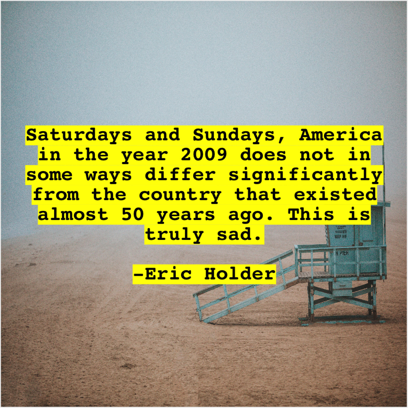 Eric Holder Eric Holder – Saturdays and Sundays, America in… September 16, 2019 admin “Saturdays and Sundays, America in the year 2009 does not in some ways differ significantly from the country that existed almost 50 years ago. This is truly sad.”-Eric Holder