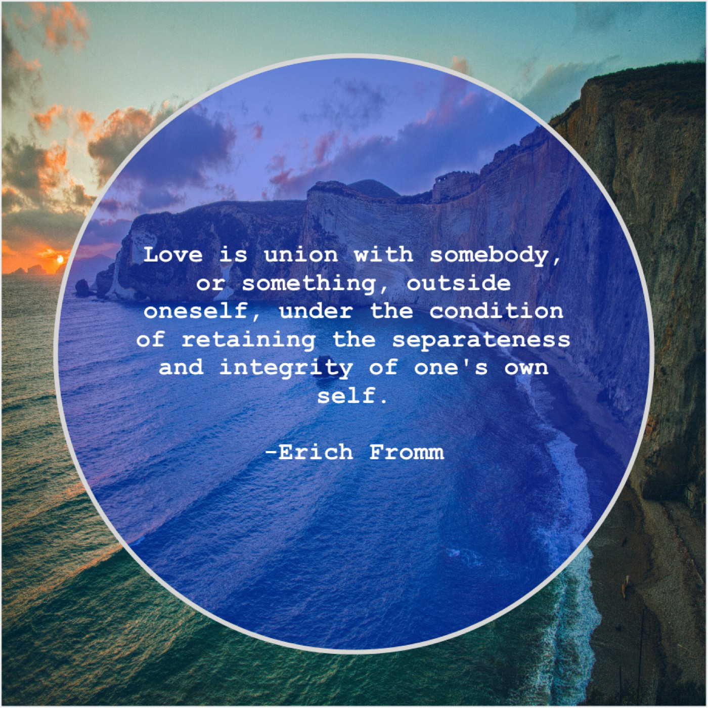Erich Fromm Erich Fromm – Love is union with somebody… December 16, 2018 admin “Love is union with somebody, or something, outside oneself, under the condition of retaining the separateness and integrity of one’s own self.”-Erich Fromm