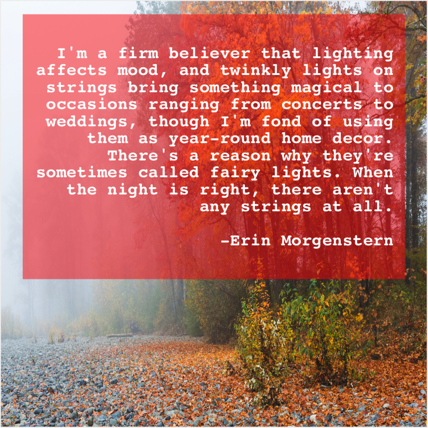 “I’m a firm believer that lighting affects mood, and twinkly lights on strings bring something magical to occasions ranging from concerts to weddings, though I’m fond of using them as year-round home decor. There’s a reason why they’re sometimes called fairy lights. When the night is right, there aren’t any strings at all.”