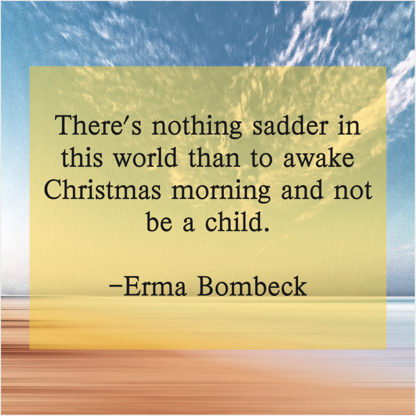 Erma Bombeck Erma Bombeck – There’s nothing sadder in this… July 30, 2019 admin “There’s nothing sadder in this world than to awake Christmas morning and not be a child.”-Erma Bombeck