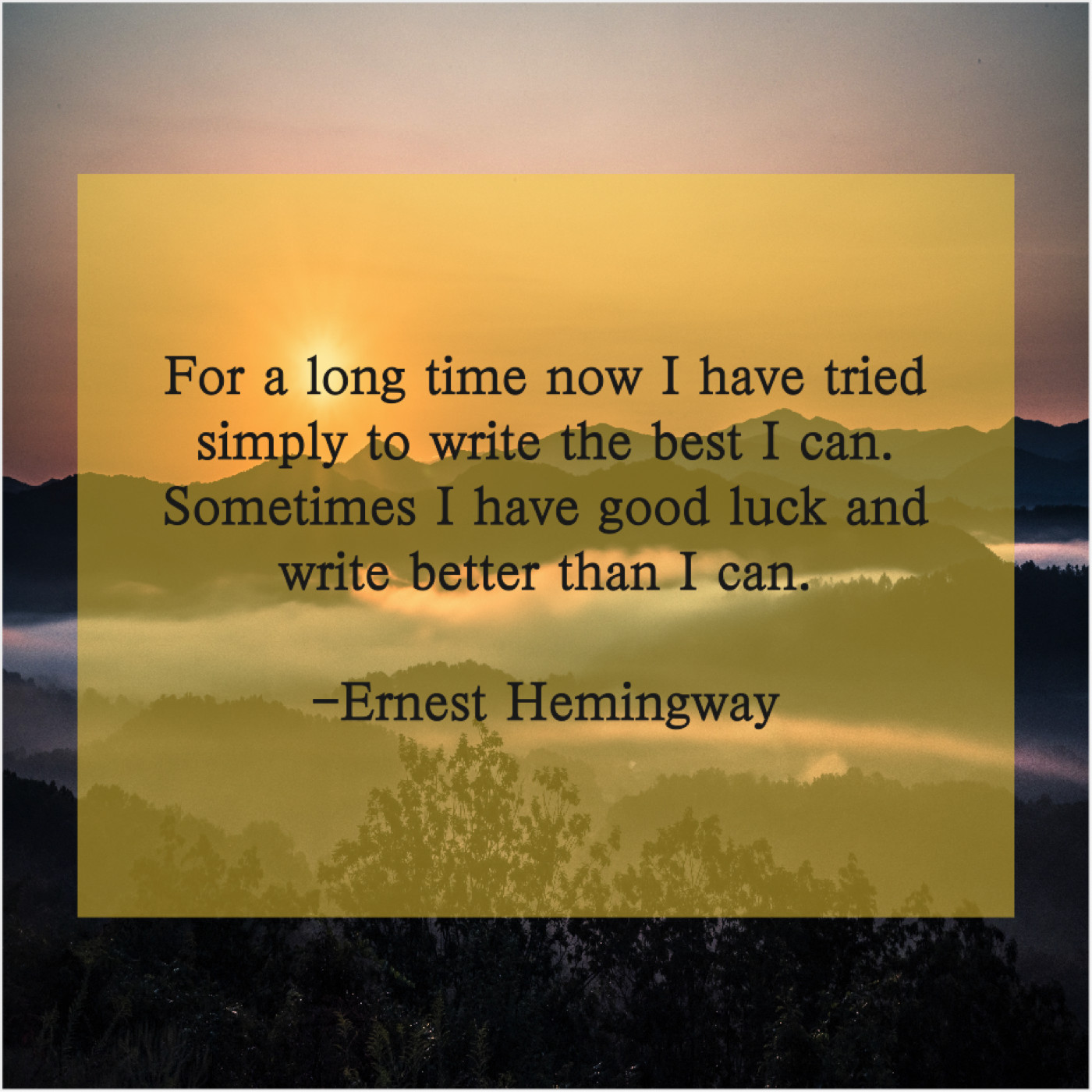 Ernest Hemingway Ernest Hemingway – For a long time now… January 16, 2019 admin “For a long time now I have tried simply to write the best I can. Sometimes I have good luck and write better than I can.”-Ernest Hemingway