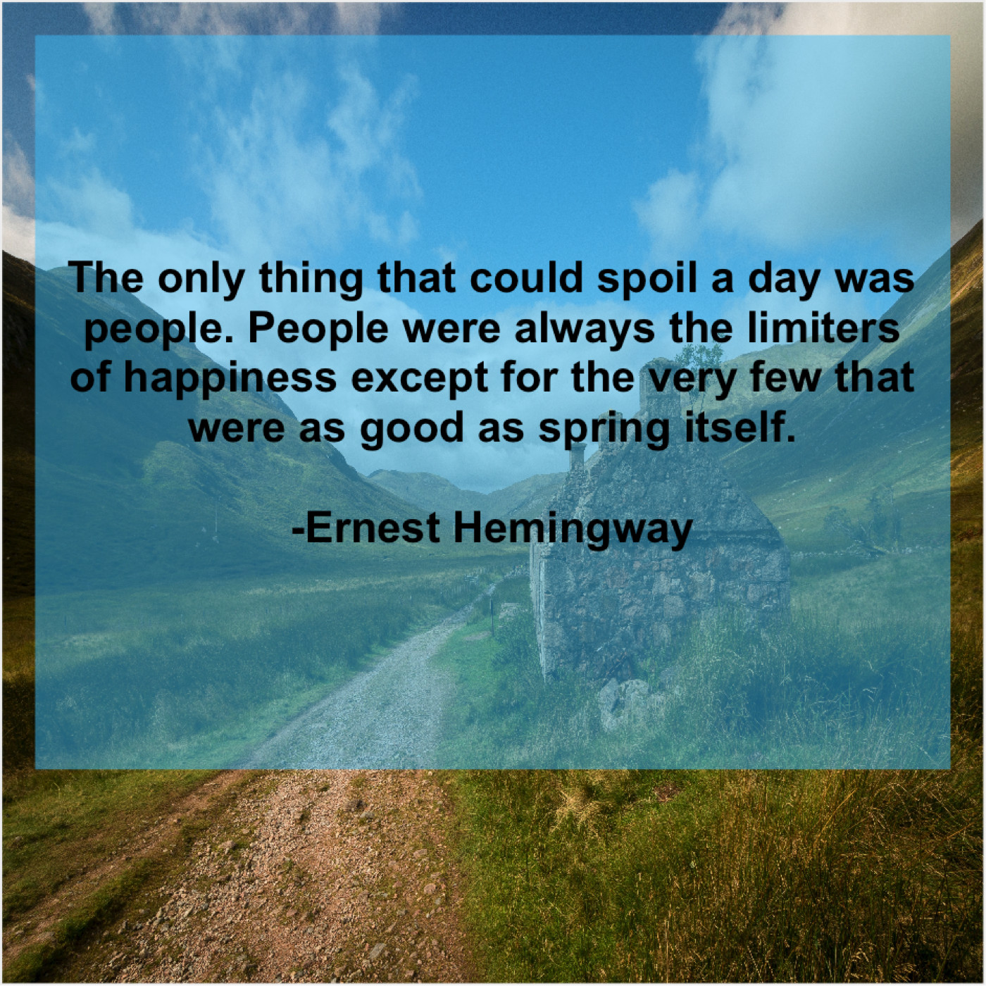 “The only thing that could spoil a day was people. People were always the limiters of happiness except for the very few that were as good as spring itself.”