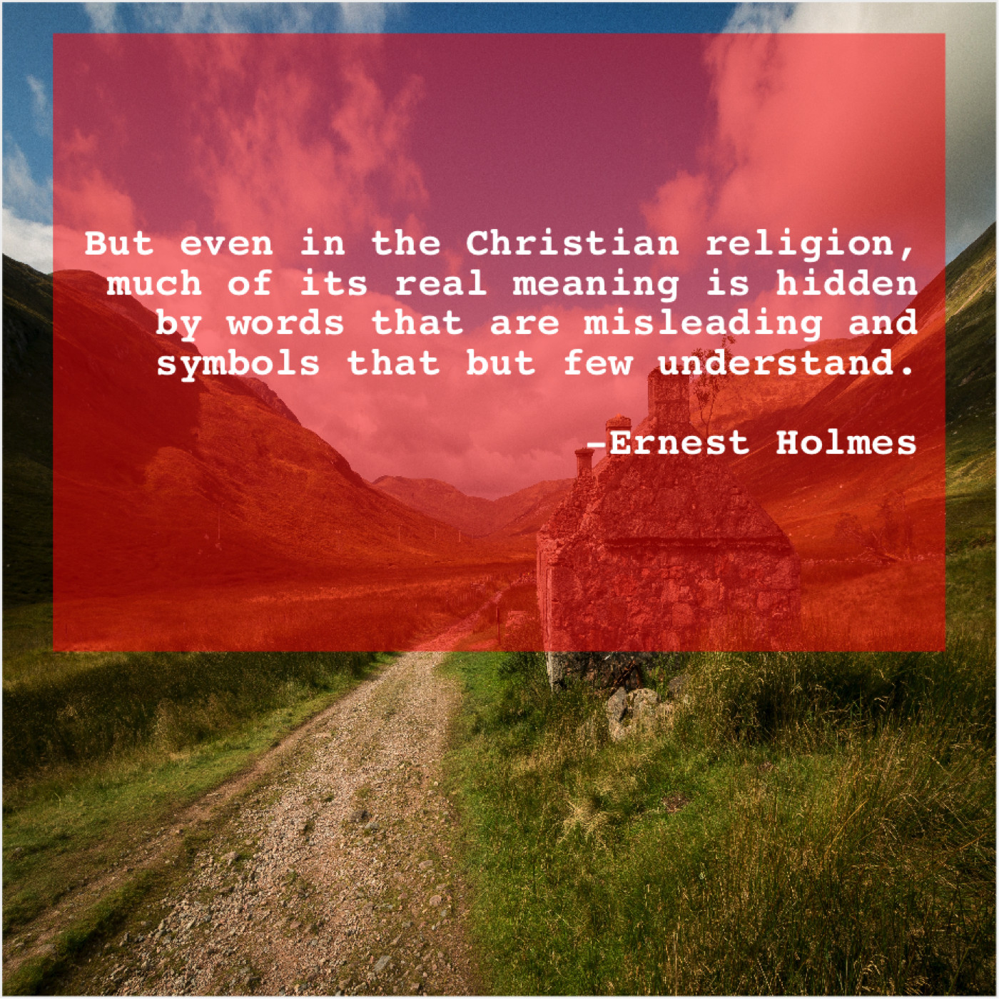 Ernest Holmes Ernest Holmes – But even in the Christian… November 22, 2018 admin “But even in the Christian religion, much of its real meaning is hidden by words that are misleading and symbols that but few understand.”-Ernest Holmes