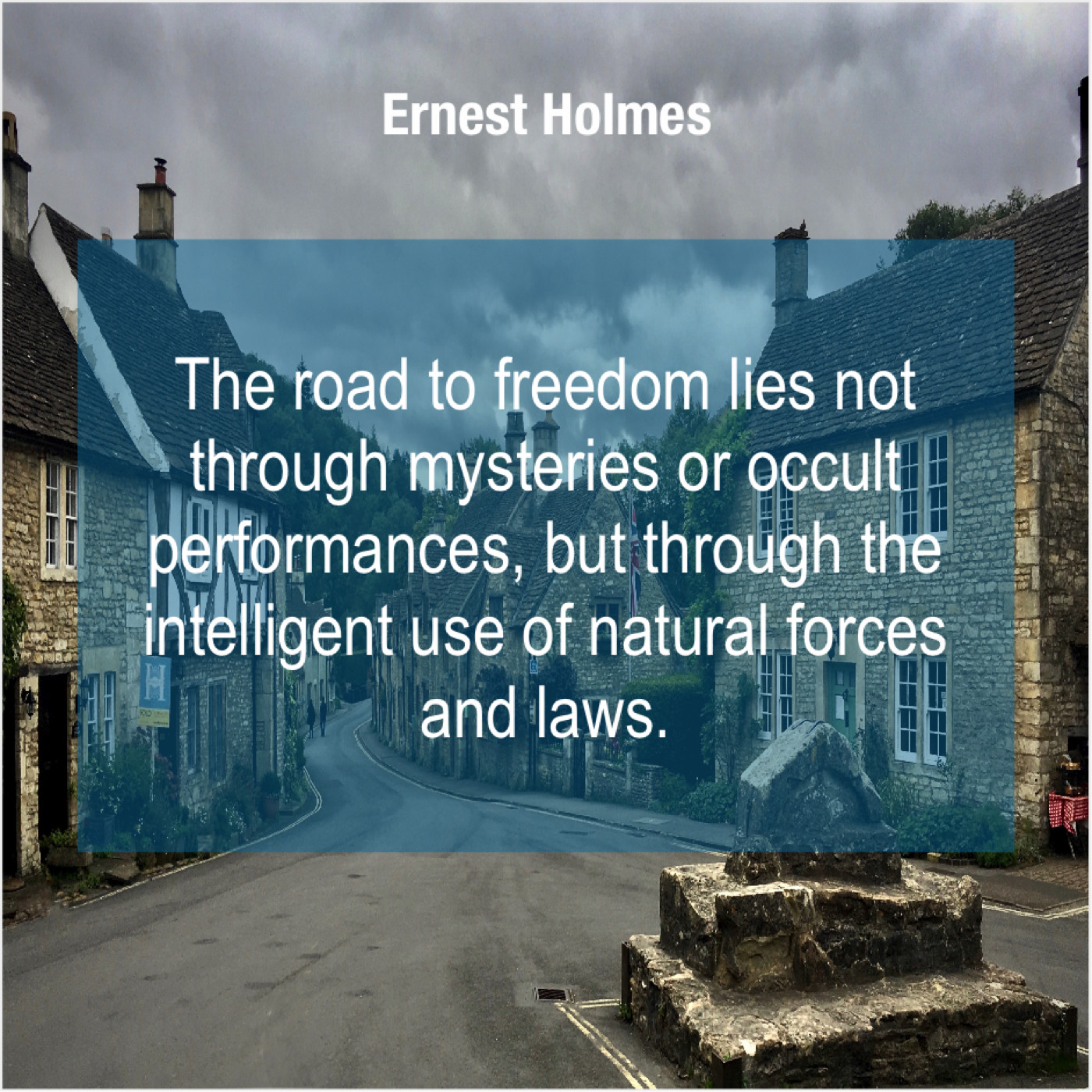Ernest Holmes Ernest Holmes – The road to freedom lies… February 15, 2019 admin “The road to freedom lies not through mysteries or occult performances, but through the intelligent use of natural forces and laws.”-Ernest Holmes