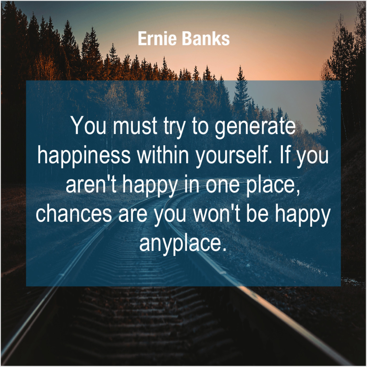 Ernie Banks Ernie Banks – You must try to generate… September 18, 2019 admin “You must try to generate happiness within yourself. If you aren’t happy in one place, chances are you won’t be happy anyplace.”-Ernie Banks