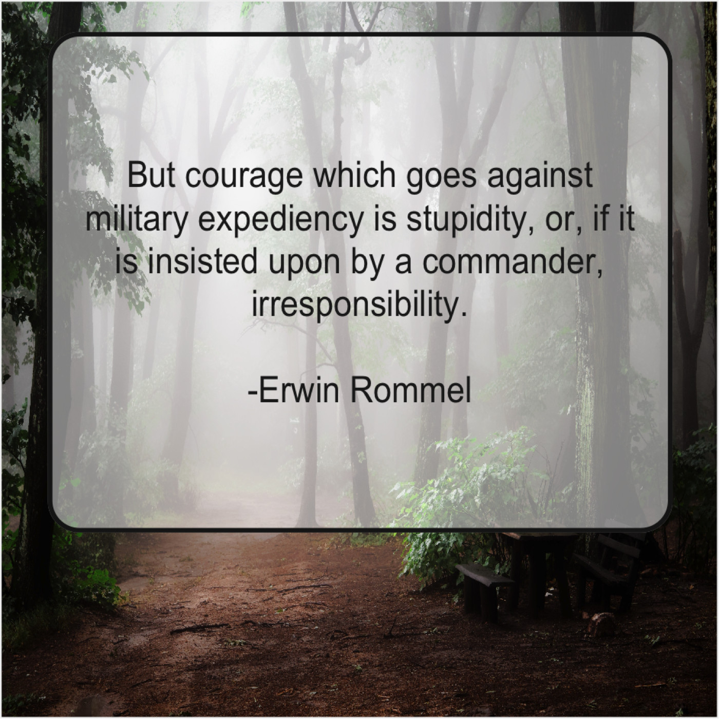 Erwin Rommel Erwin Rommel – But courage which goes against… February 16, 2019 admin “But courage which goes against military expediency is stupidity, or, if it is insisted upon by a commander, irresponsibility.”-Erwin Rommel