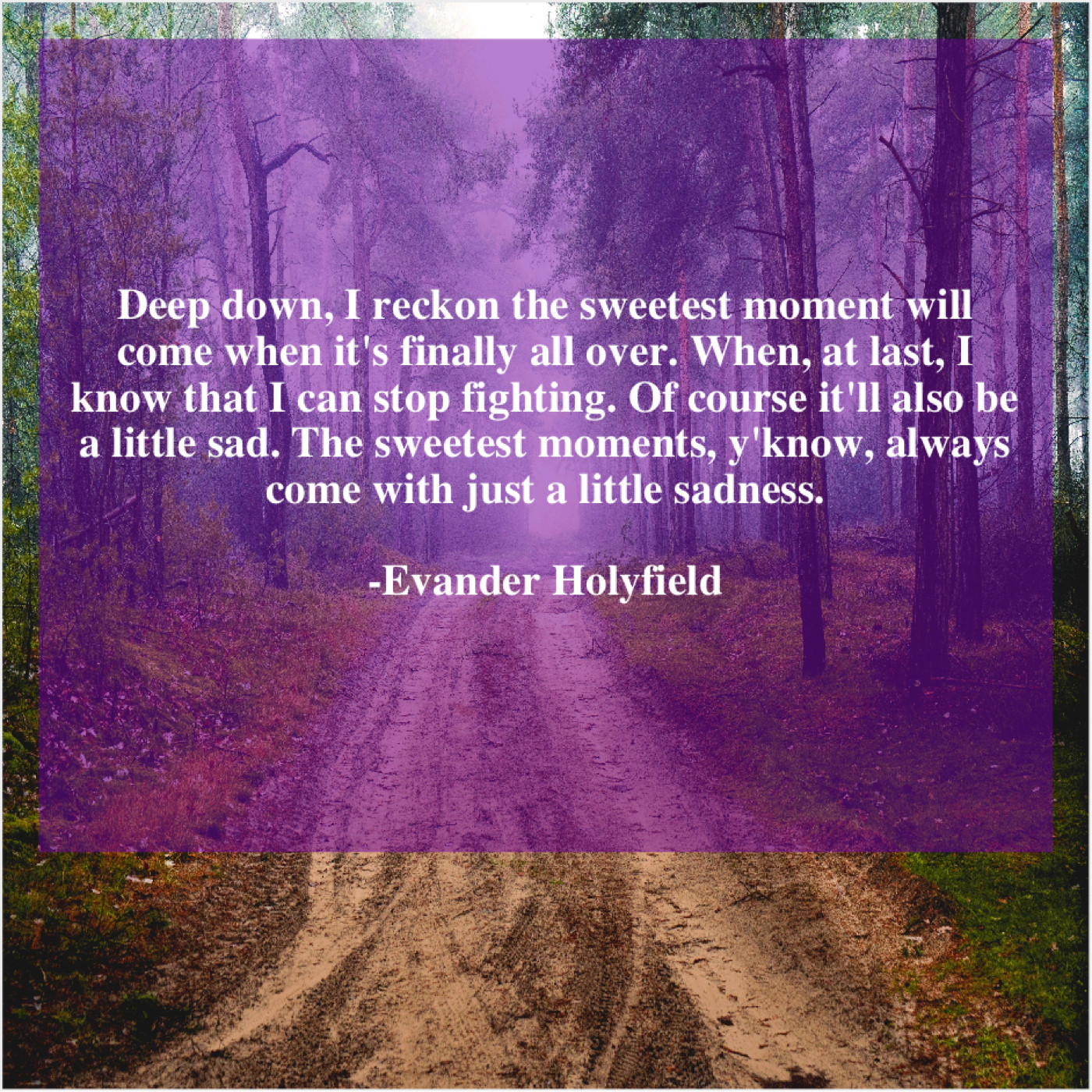 “Deep down, I reckon the sweetest moment will come when it’s finally all over. When, at last, I know that I can stop fighting. Of course it’ll also be a little sad. The sweetest moments, y’know, always come with just a little sadness.”