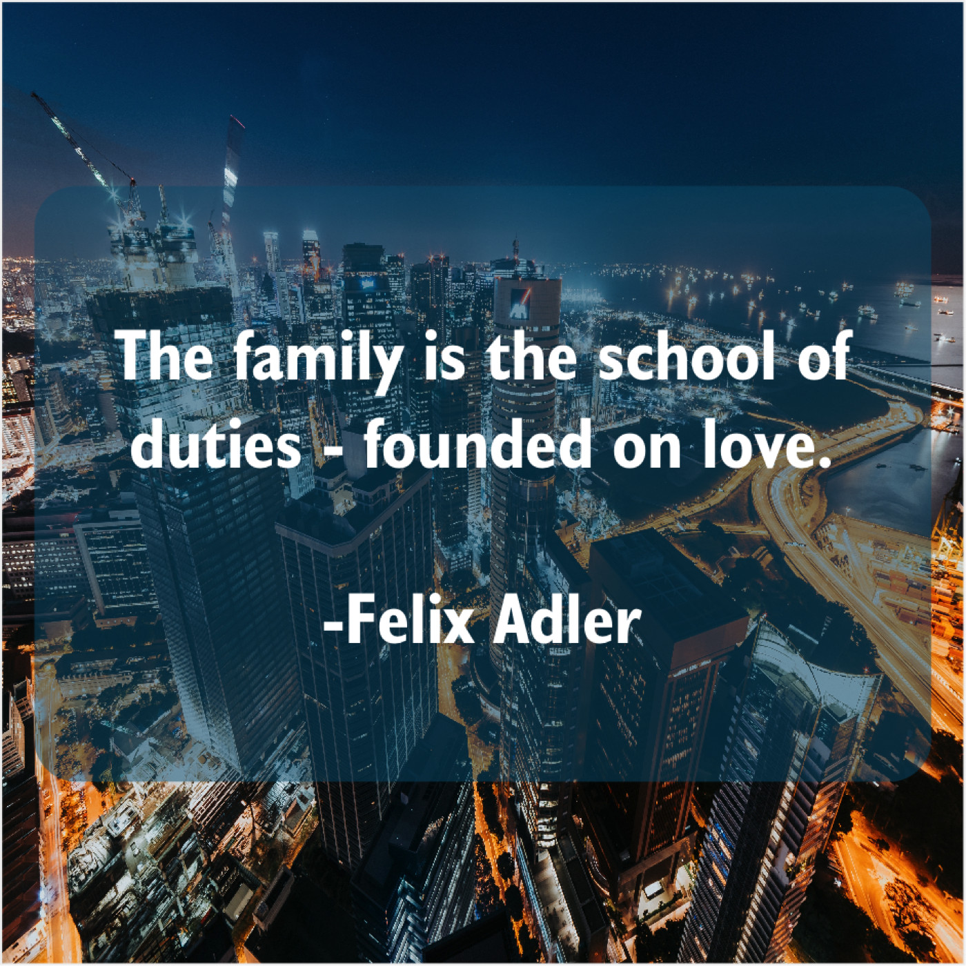 Felix Adler Felix Adler – The family is the school… April 13, 2019 admin “The family is the school of duties – founded on love.”-Felix Adler