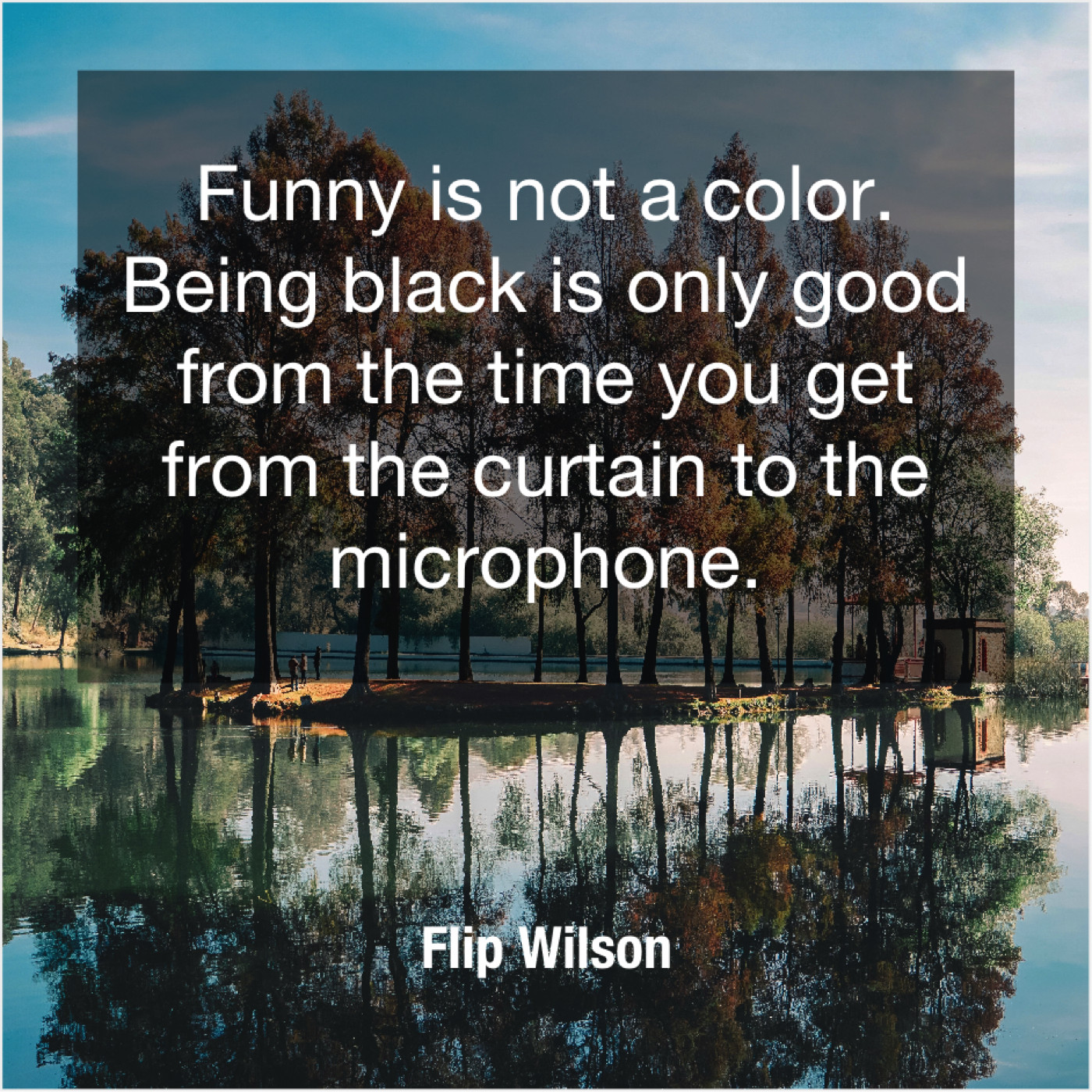 Flip Wilson Flip Wilson – Funny is not a color… October 8, 2019 admin “Funny is not a color. Being black is only good from the time you get from the curtain to the microphone.”-Flip Wilson