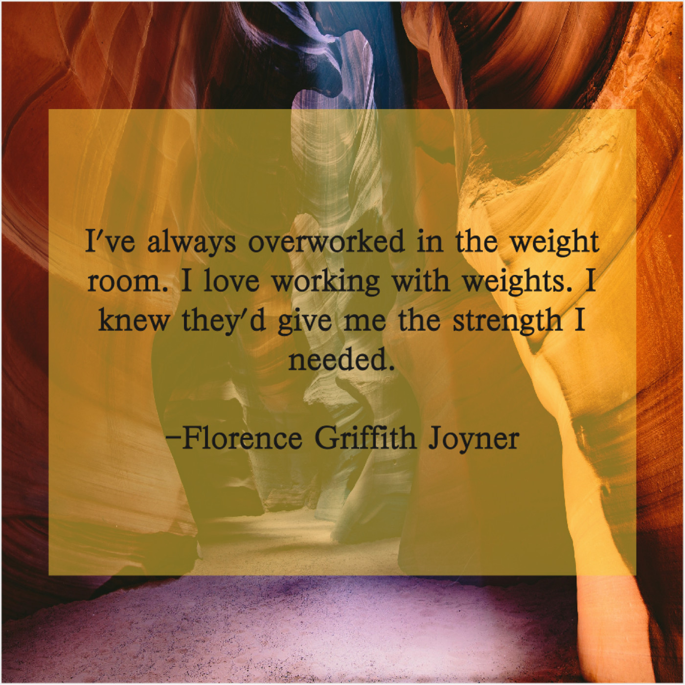 Florence Griffith Joyner Florence Griffith Joyner – I’ve always overworked in the… December 5, 2018 admin “I’ve always overworked in the weight room. I love working with weights. I knew they’d give me the strength I needed.”-Florence Griffith Joyner