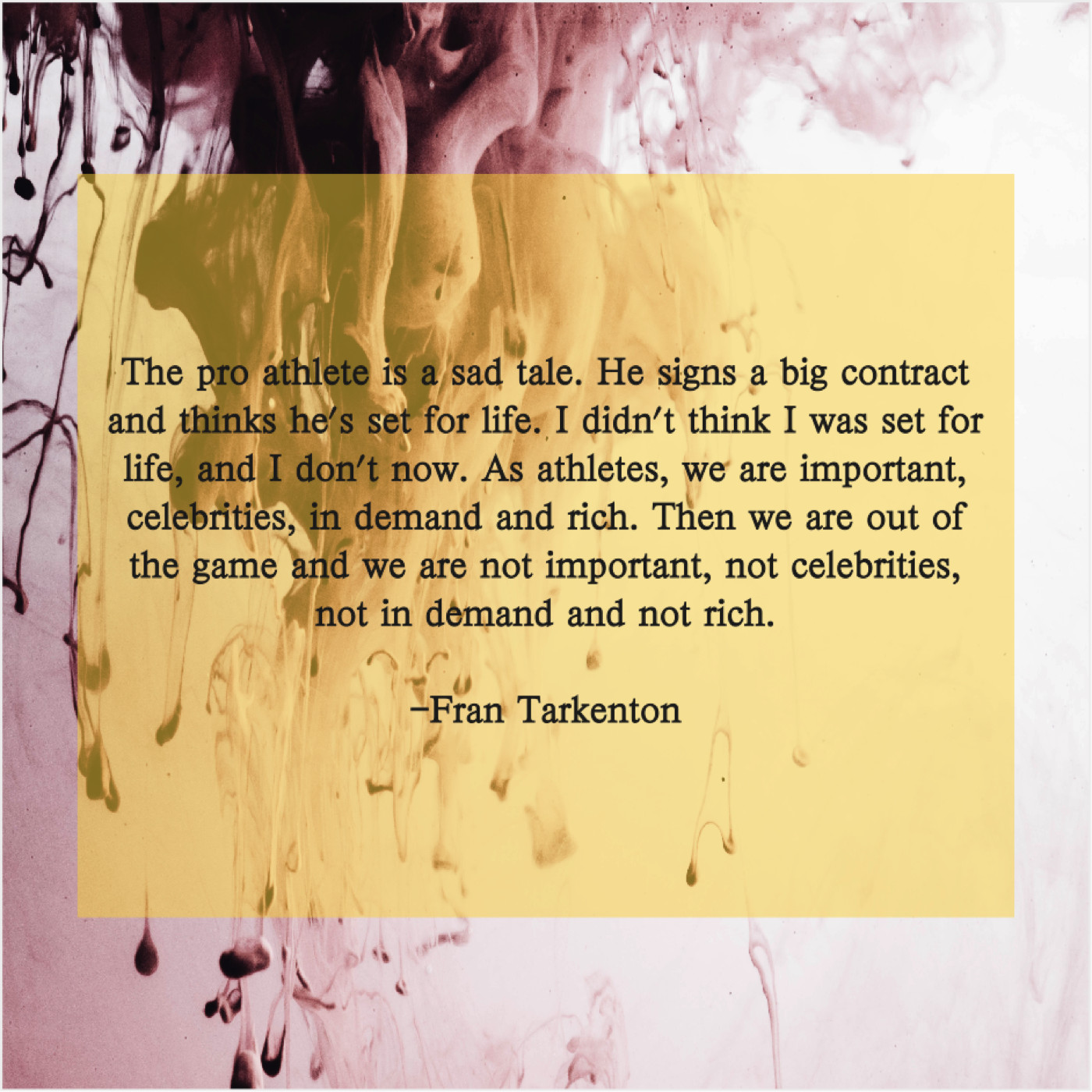 “The pro athlete is a sad tale. He signs a big contract and thinks he’s set for life. I didn’t think I was set for life, and I don’t now. As athletes, we are important, celebrities, in demand and rich. Then we are out of the game and we are not important, not celebrities, not in demand and not rich.”