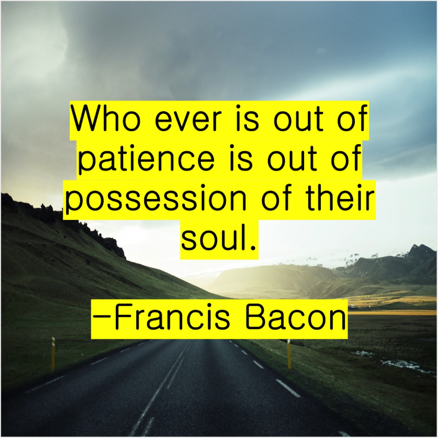 Francis Bacon Francis Bacon – Who ever is out of… May 18, 2019 admin “Who ever is out of patience is out of possession of their soul.”-Francis Bacon