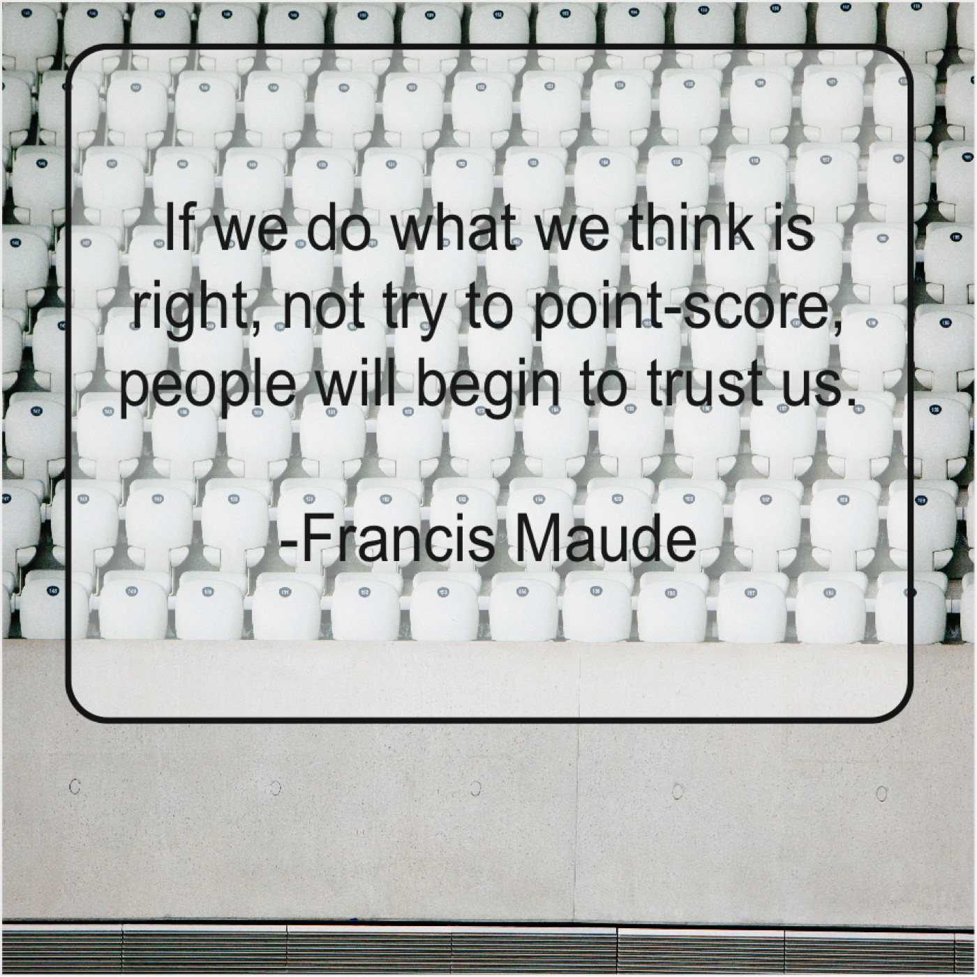 Francis Maude Francis Maude – If we do what we… May 2, 2019 admin “If we do what we think is right, not try to point-score, people will begin to trust us.”-Francis Maude