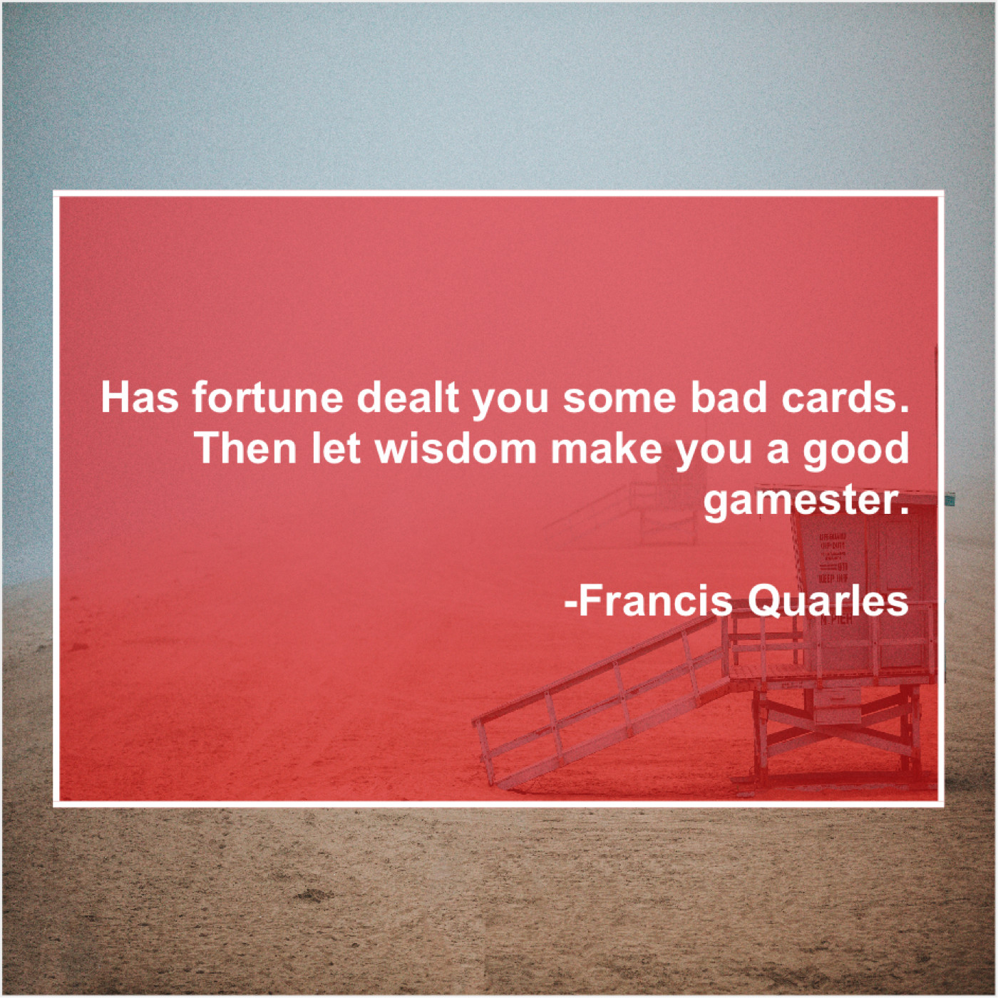 Francis Quarles Francis Quarles – Has fortune dealt you some… August 15, 2019 admin “Has fortune dealt you some bad cards. Then let wisdom make you a good gamester.”-Francis Quarles