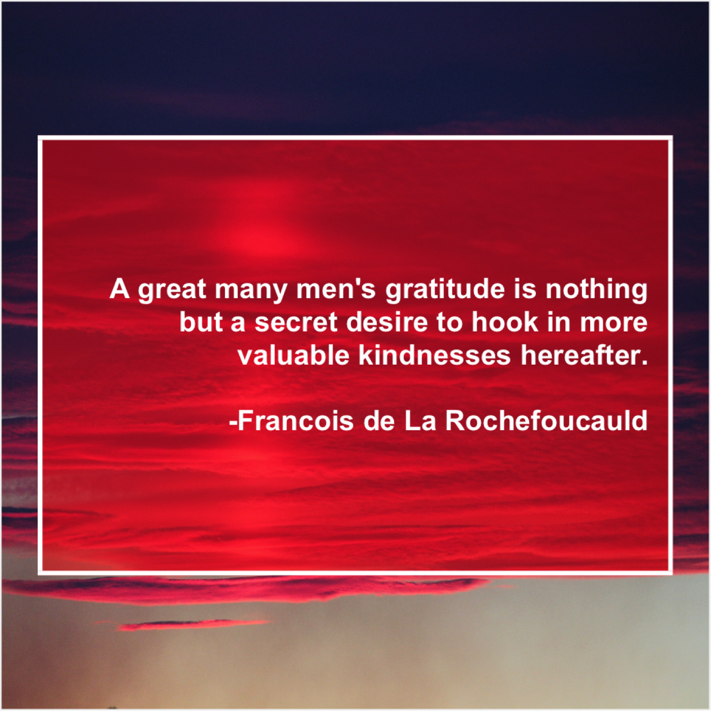 Francois de La Rochefoucauld Francois de La Rochefoucauld – A great many men’s gratitude… February 13, 2019 admin “A great many men’s gratitude is nothing but a secret desire to hook in more valuable kindnesses hereafter.”-Francois de La Rochefoucauld