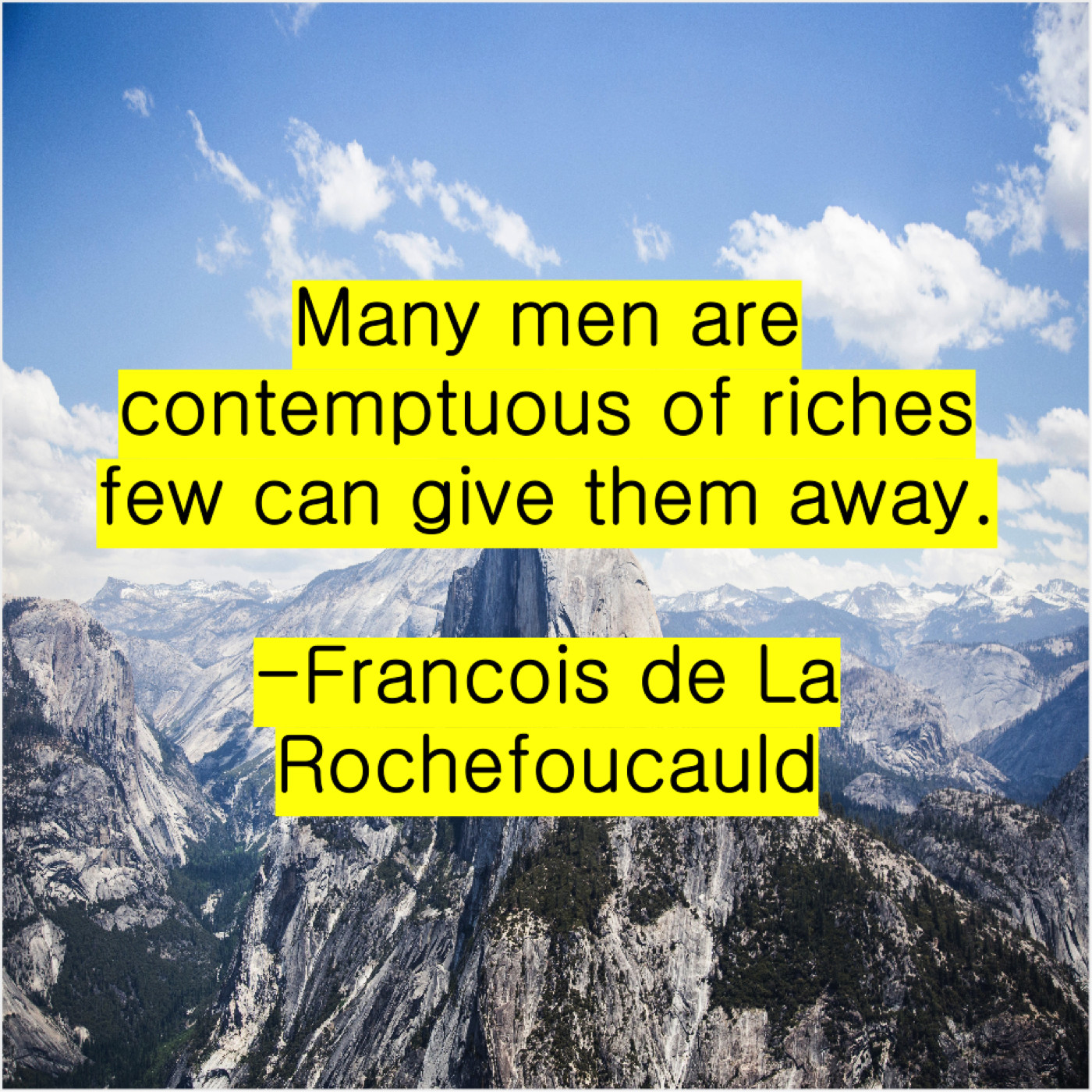 Francois de La Rochefoucauld Francois de La Rochefoucauld – Many men are contemptuous of… November 17, 2018 admin “Many men are contemptuous of riches few can give them away.”-Francois de La Rochefoucauld