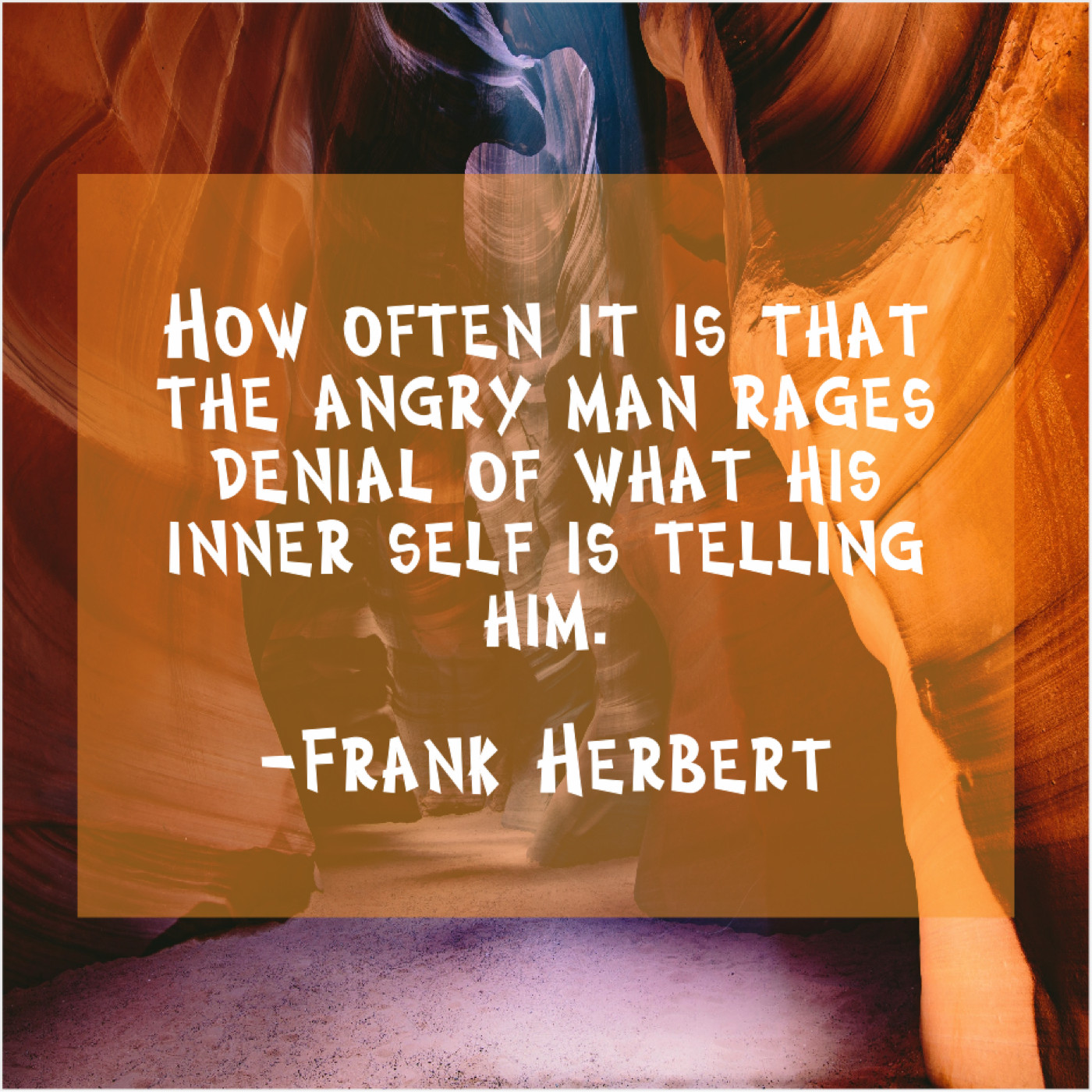 Frank Herbert Frank Herbert – How often it is that… March 25, 2019 admin “How often it is that the angry man rages denial of what his inner self is telling him.”-Frank Herbert