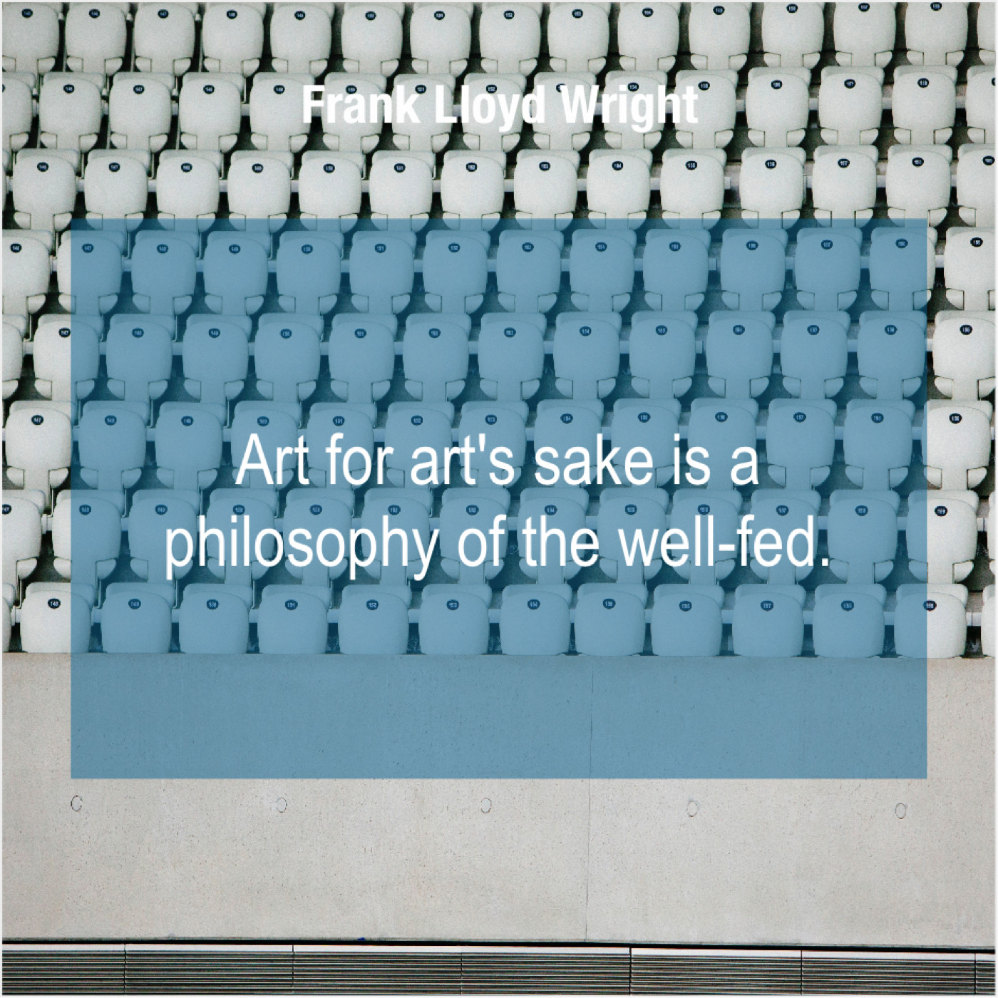 Frank Lloyd Wright Frank Lloyd Wright – Art for art’s sake is… August 8, 2019 admin “Art for art’s sake is a philosophy of the well-fed.”-Frank Lloyd Wright