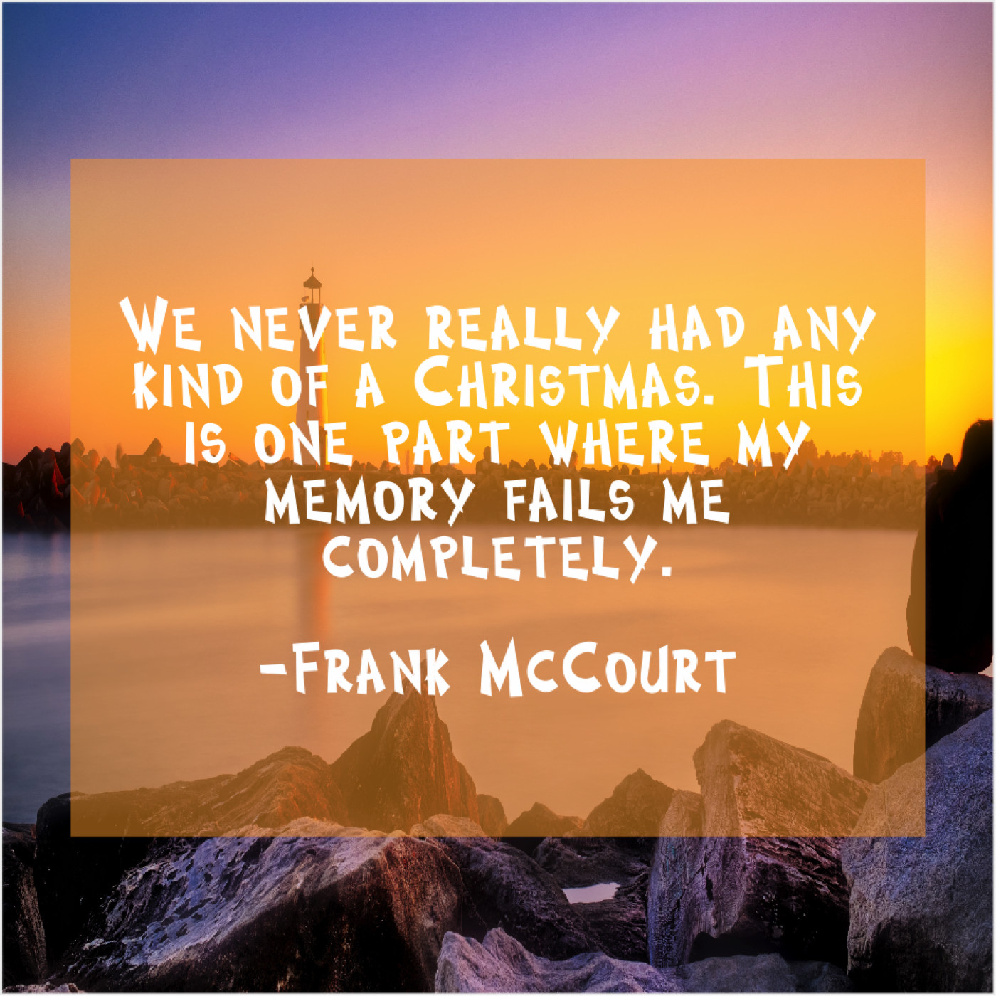 Frank McCourt Frank McCourt – We never really had any… September 15, 2019 admin “We never really had any kind of a Christmas. This is one part where my memory fails me completely.”-Frank McCourt