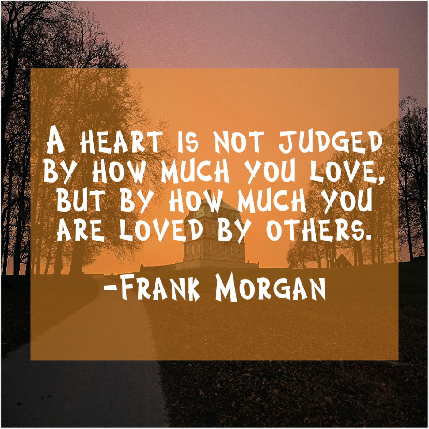 Frank Morgan Frank Morgan – A heart is not judged… September 18, 2019 admin “A heart is not judged by how much you love, but by how much you are loved by others.”-Frank Morgan