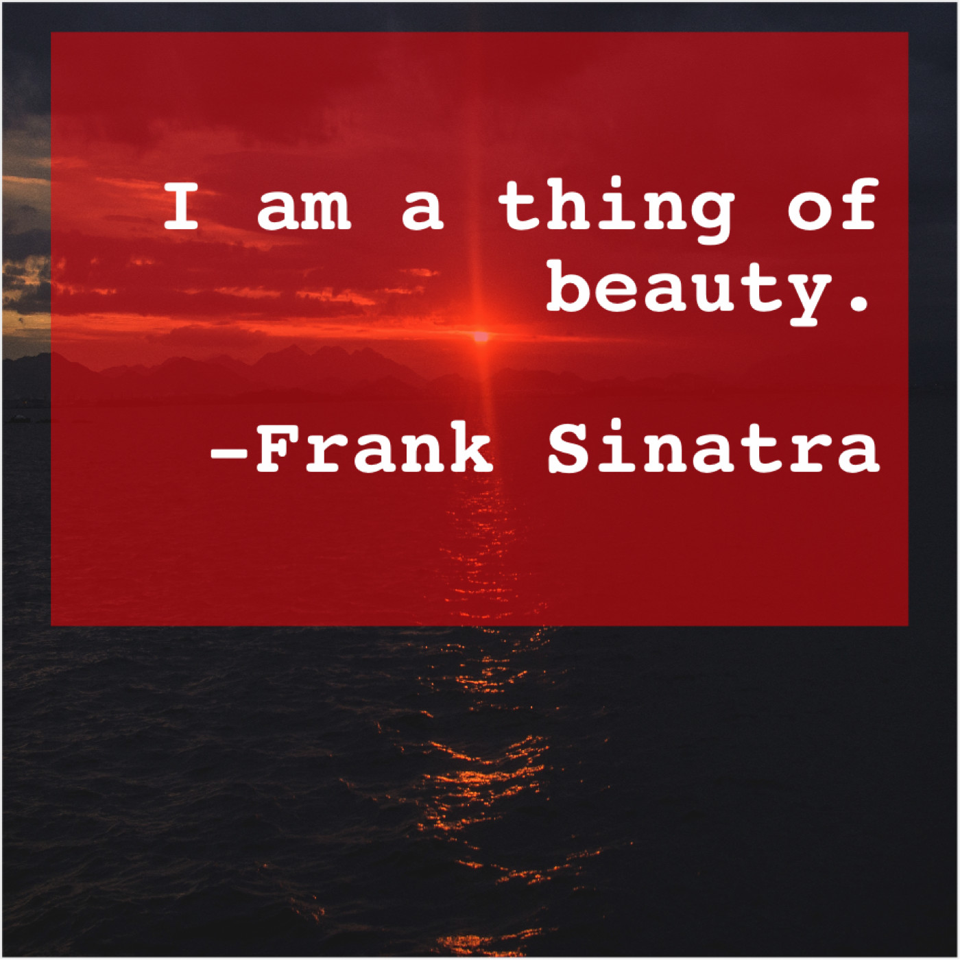 Frank Sinatra Frank Sinatra – I am a thing of… January 5, 2019 admin “I am a thing of beauty.”-Frank Sinatra