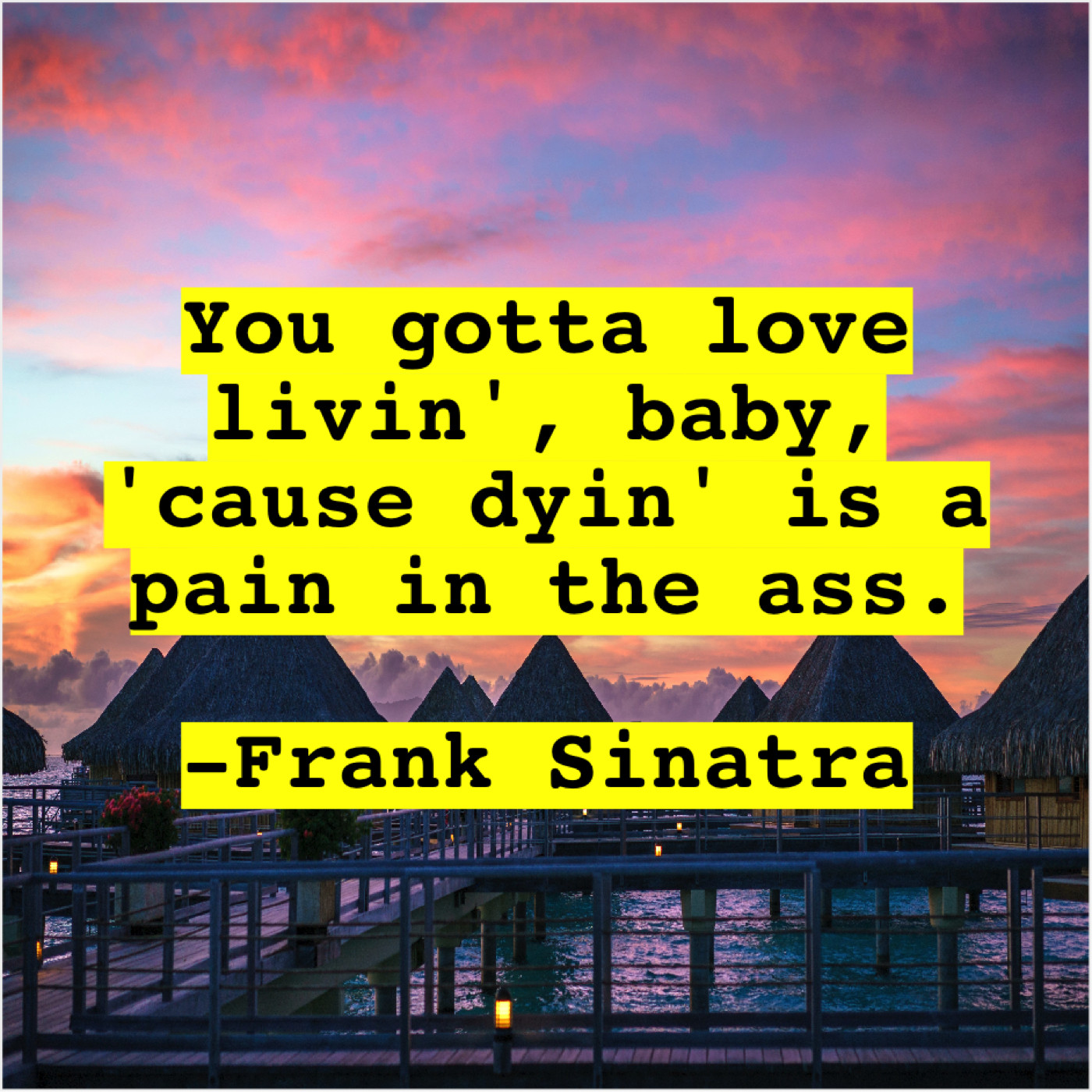 Frank Sinatra Frank Sinatra – You gotta love livin’, baby… July 13, 2019 admin “You gotta love livin’, baby, ’cause dyin’ is a pain in the ass.”-Frank Sinatra
