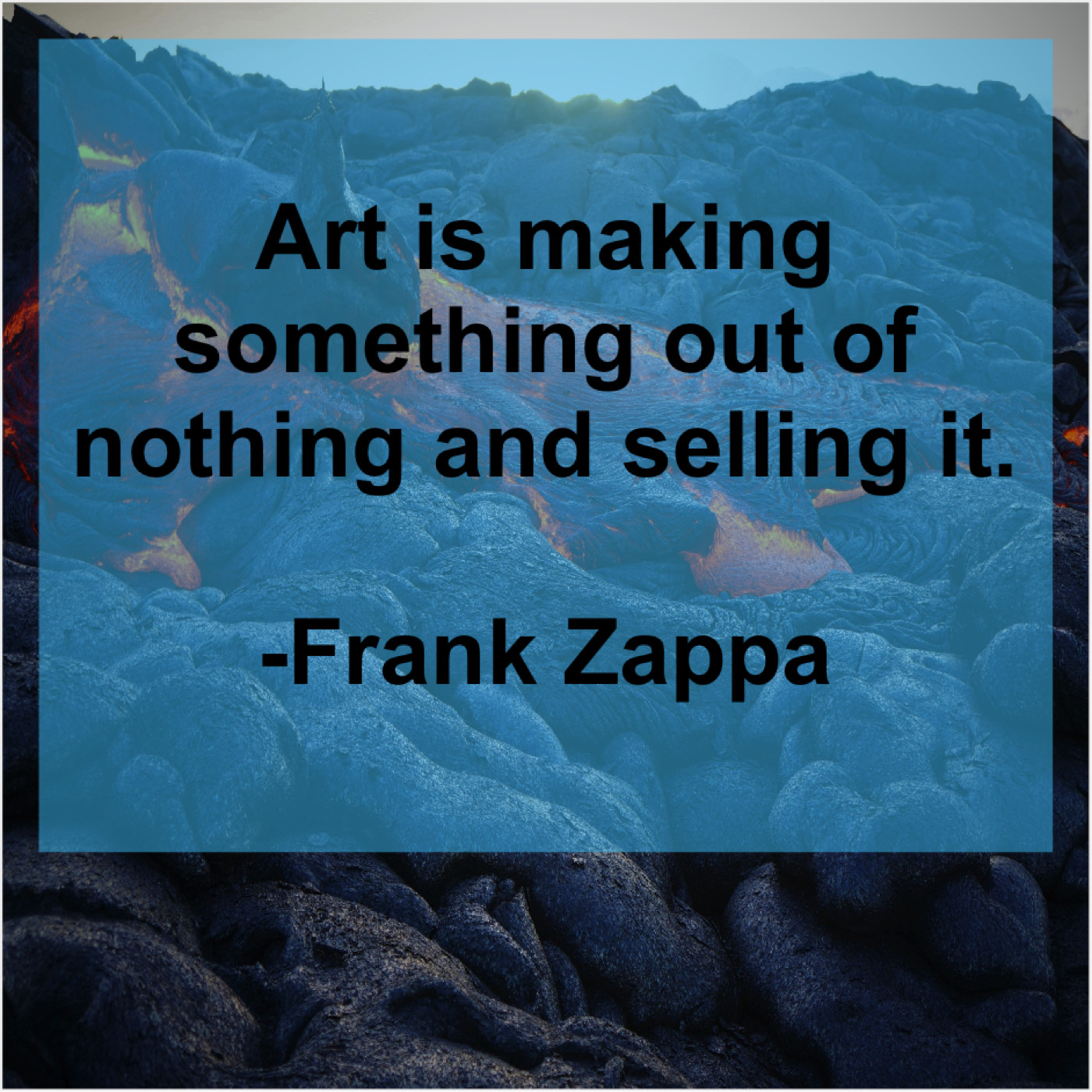Frank Zappa Frank Zappa – Art is making something out… January 12, 2019 admin “Art is making something out of nothing and selling it.”-Frank Zappa