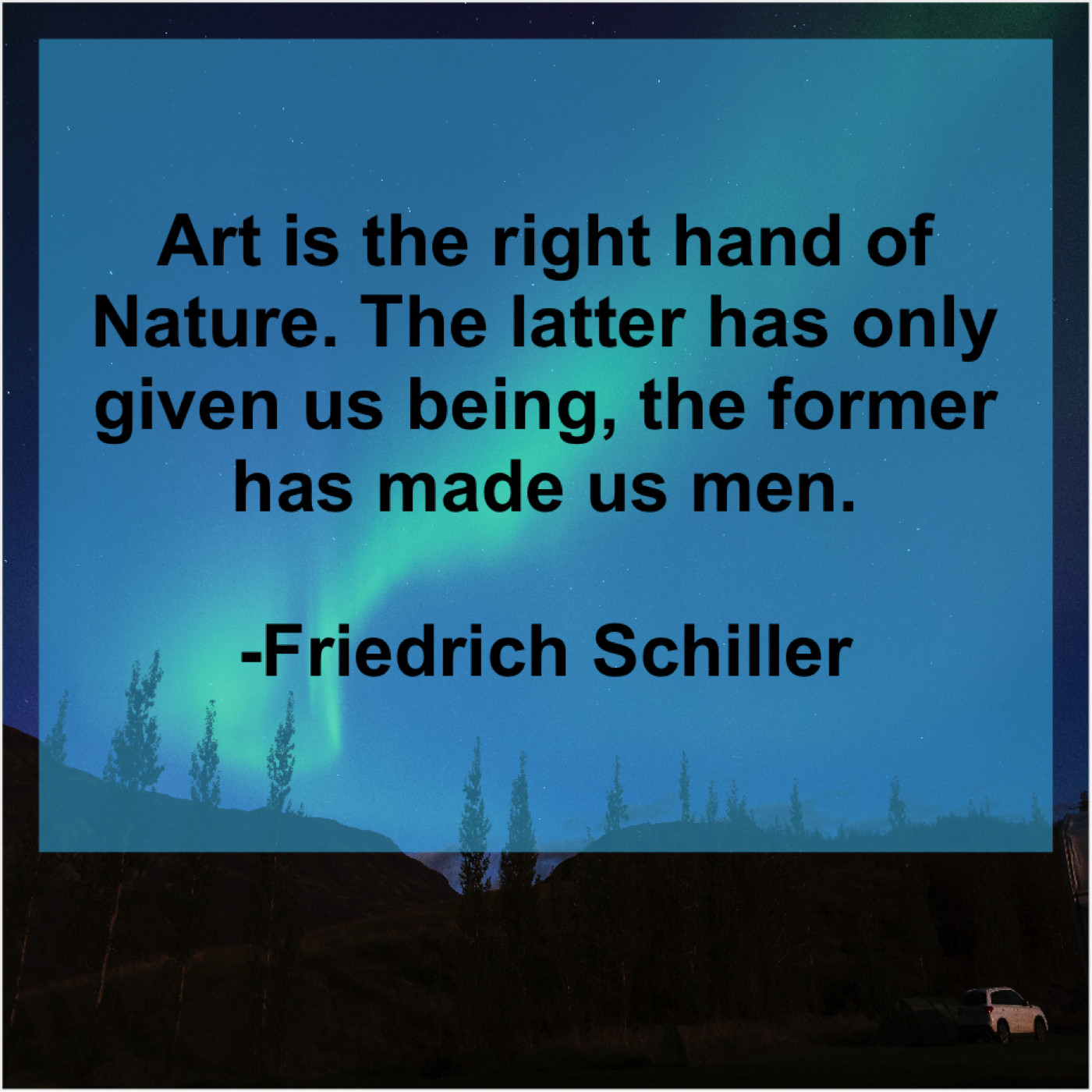 Friedrich Schiller Friedrich Schiller – Art is the right hand… January 31, 2019 admin “Art is the right hand of Nature. The latter has only given us being, the former has made us men.”-Friedrich Schiller