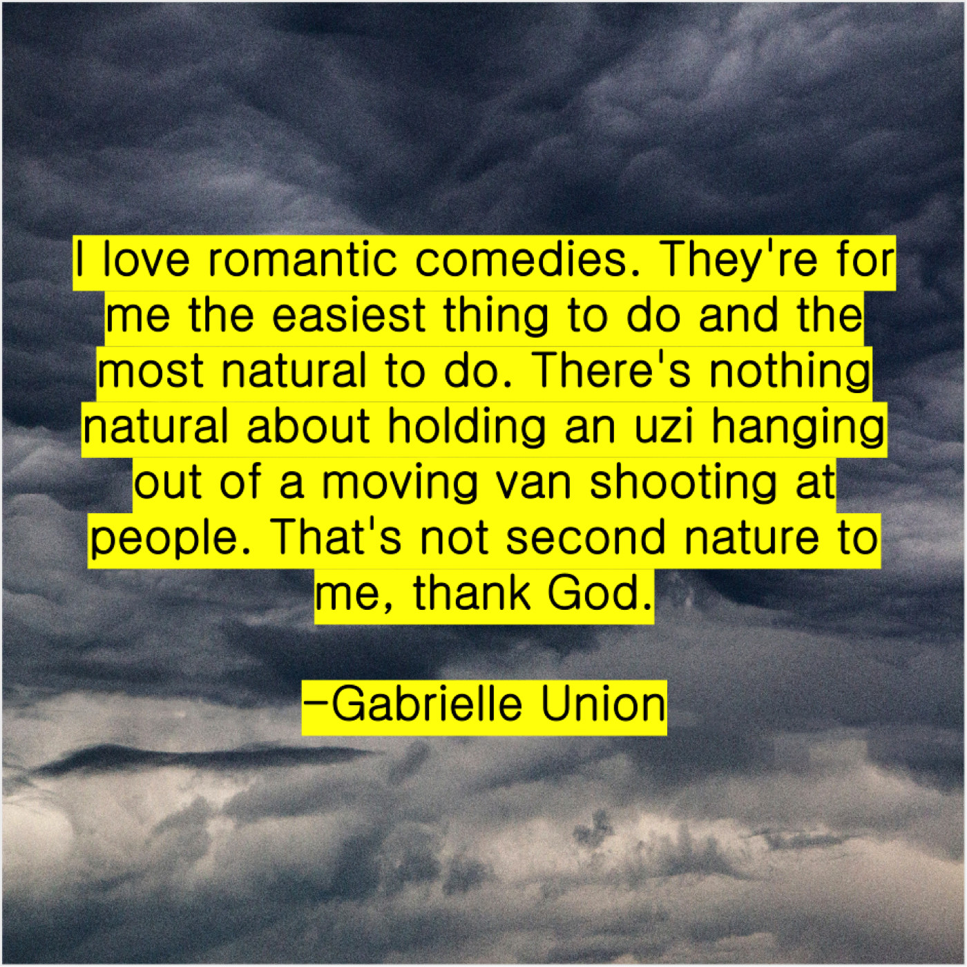 “I love romantic comedies. They’re for me the easiest thing to do and the most natural to do. There’s nothing natural about holding an uzi hanging out of a moving van shooting at people. That’s not second nature to me, thank God.”