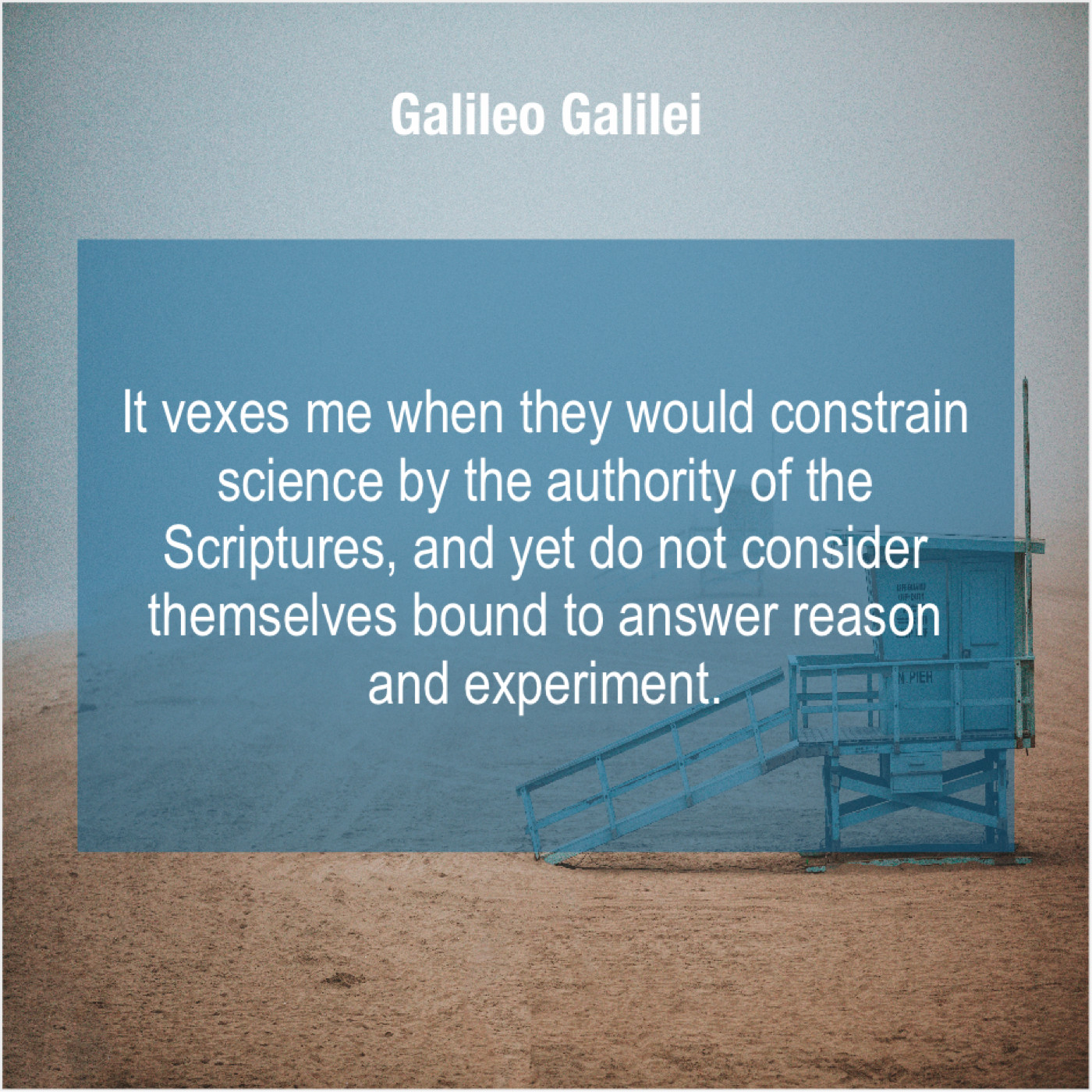Galileo Galilei Galileo Galilei – It vexes me when they… March 4, 2019 admin “It vexes me when they would constrain science by the authority of the Scriptures, and yet do not consider themselves bound to answer reason and experiment.”-Galileo Galilei