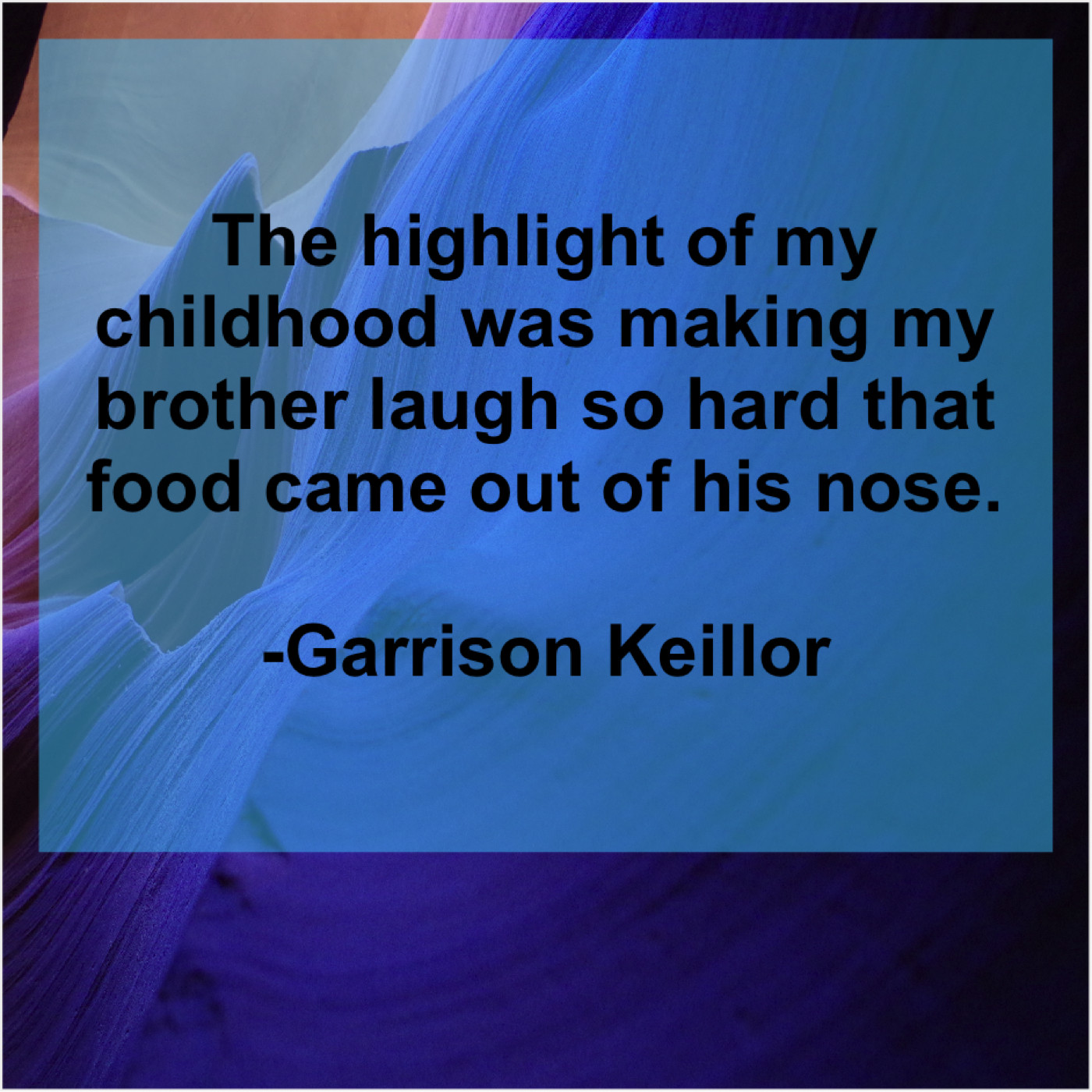 Garrison Keillor Garrison Keillor – The highlight of my childhood… March 25, 2019 admin “The highlight of my childhood was making my brother laugh so hard that food came out of his nose.”-Garrison Keillor