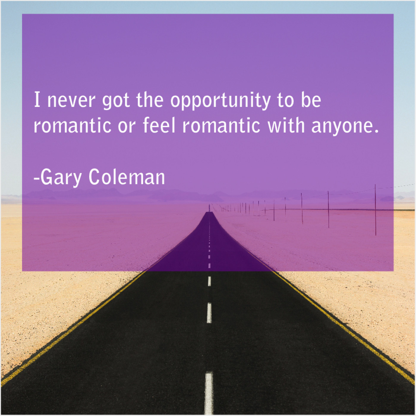 Gary Coleman Gary Coleman – I never got the opportunity… March 2, 2019 admin “I never got the opportunity to be romantic or feel romantic with anyone.”-Gary Coleman