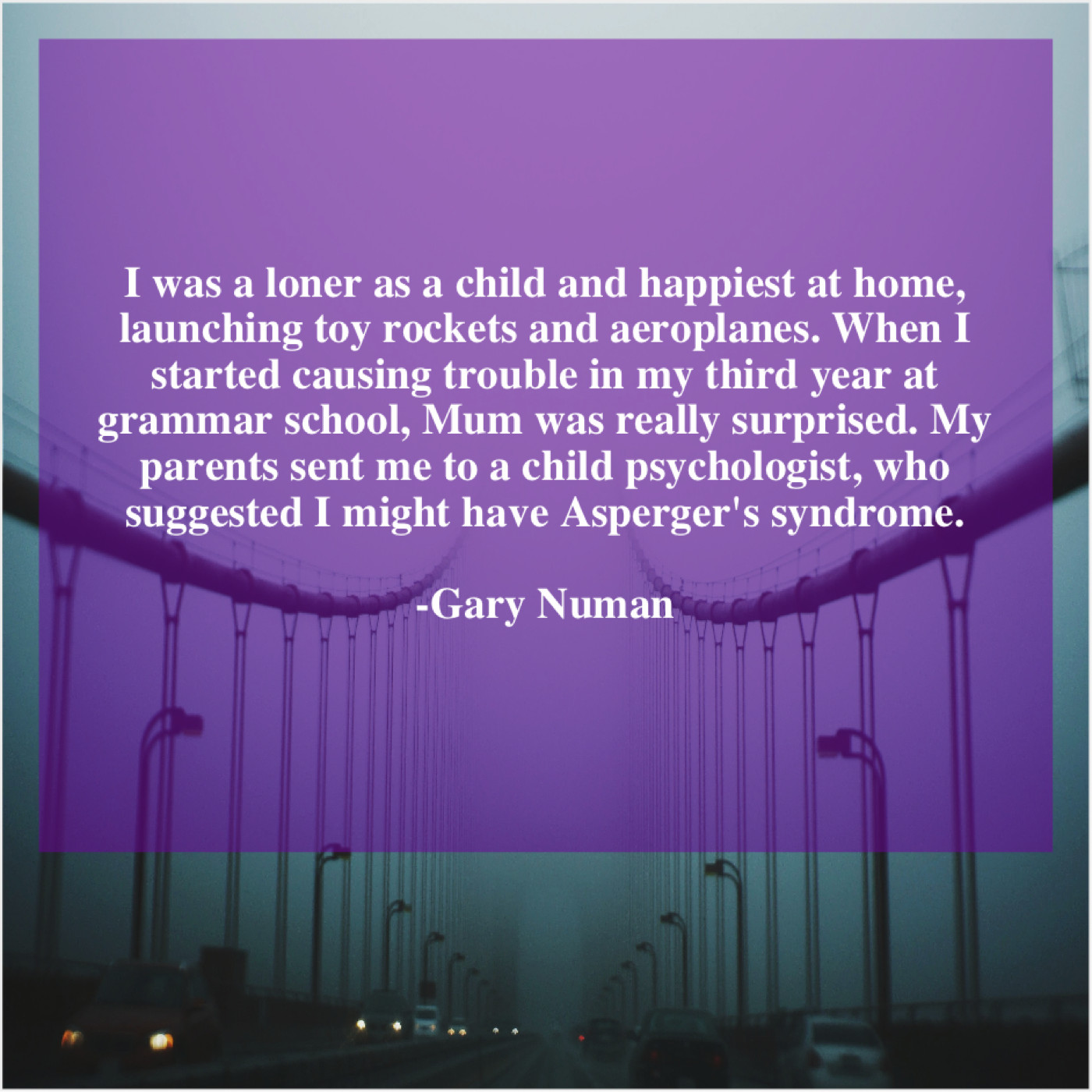“I was a loner as a child and happiest at home, launching toy rockets and aeroplanes. When I started causing trouble in my third year at grammar school, Mum was really surprised. My parents sent me to a child psychologist, who suggested I might have Asperger’s syndrome.”