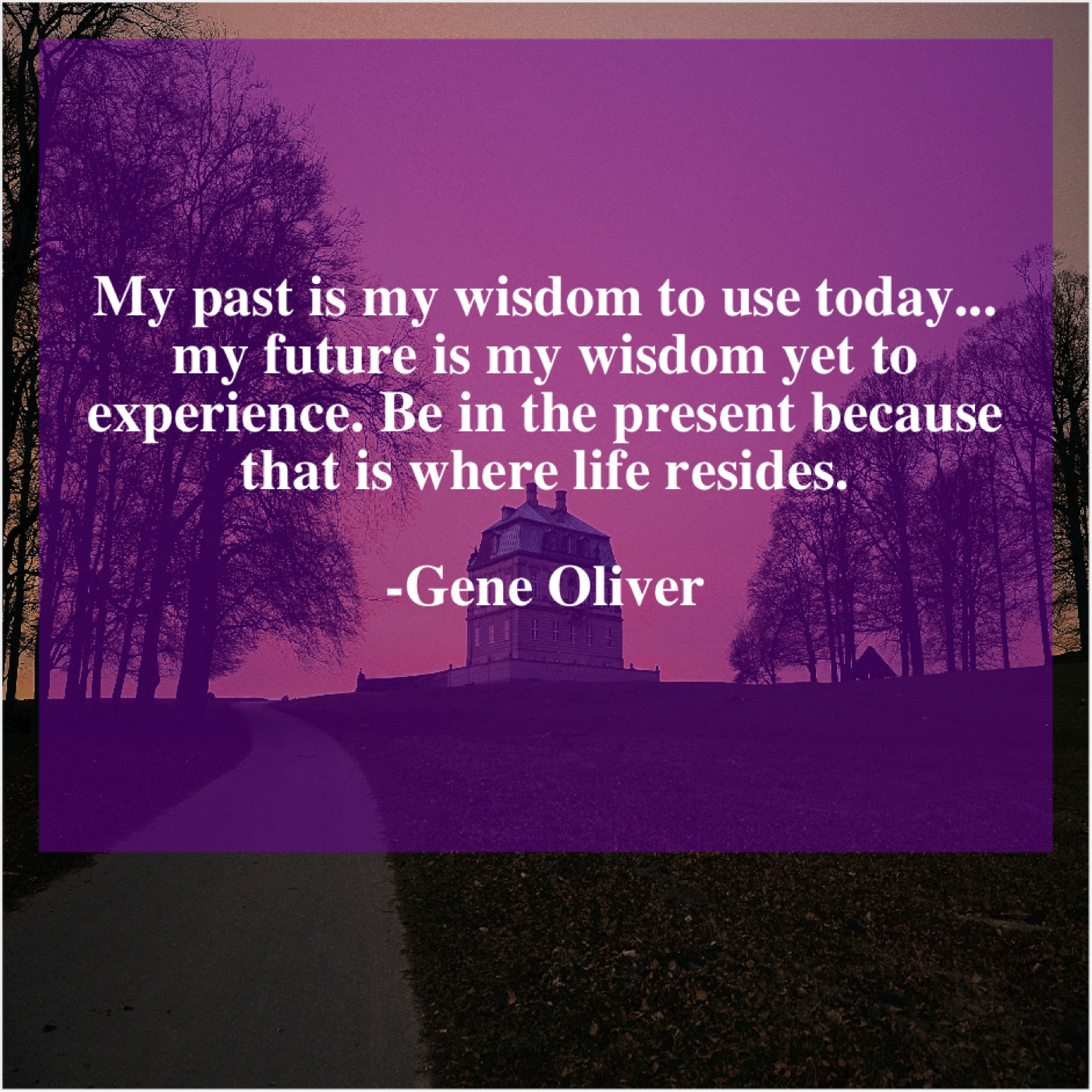 Gene Oliver Gene Oliver – My past is my wisdom… June 29, 2019 admin “My past is my wisdom to use today… my future is my wisdom yet to experience. Be in the present because that is where life resides.”-Gene Oliver