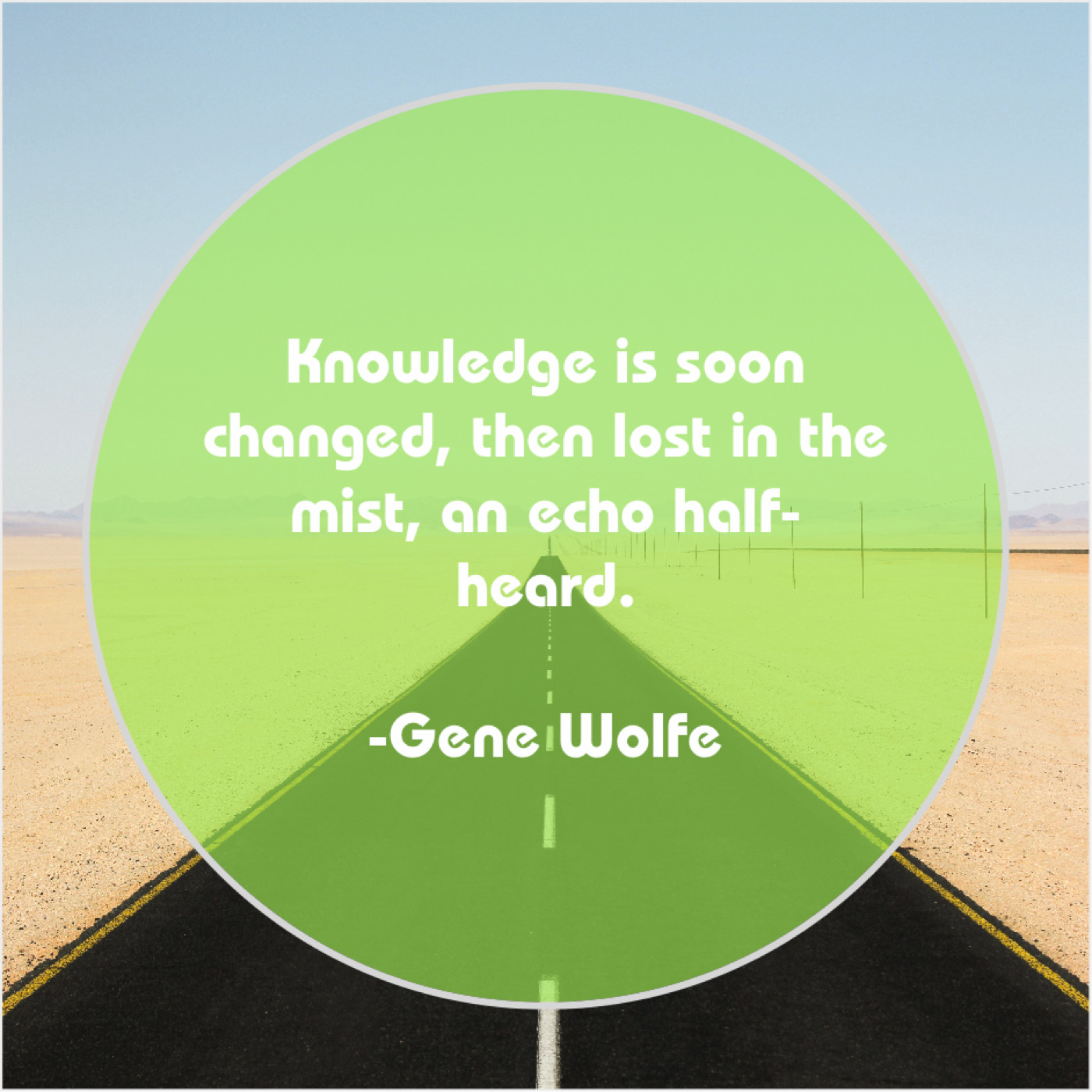 Gene Wolfe Gene Wolfe – Knowledge is soon changed, then… January 28, 2019 admin “Knowledge is soon changed, then lost in the mist, an echo half-heard.”-Gene Wolfe