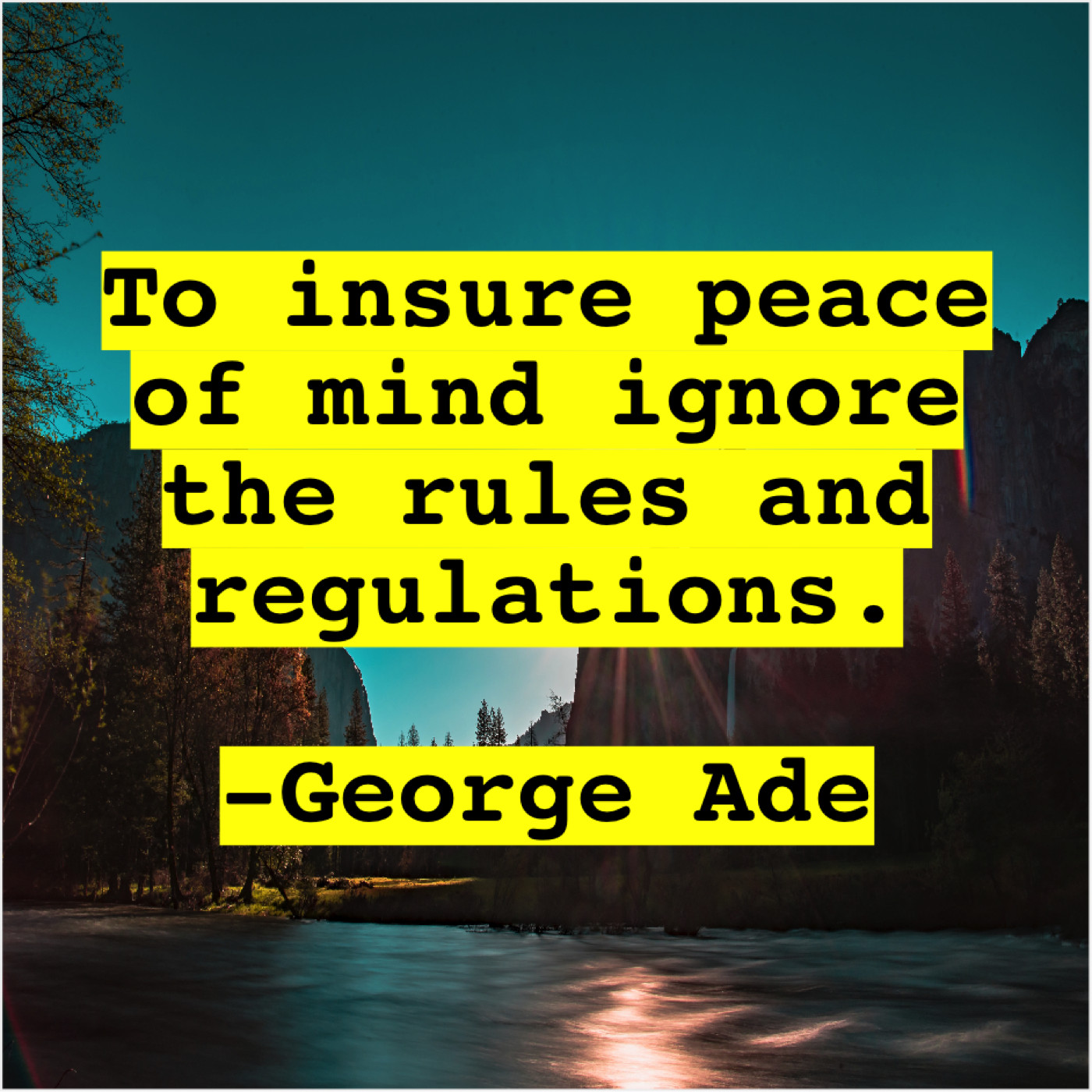 George Ade George Ade – To insure peace of mind… February 1, 2019 admin “To insure peace of mind ignore the rules and regulations.”-George Ade