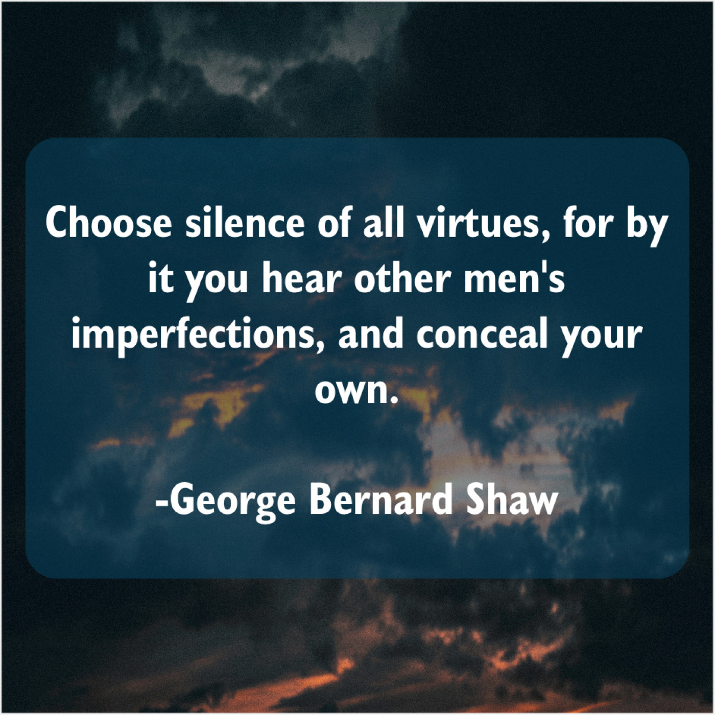 George Bernard Shaw George Bernard Shaw – Choose silence of all virtues… October 1, 2019 admin “Choose silence of all virtues, for by it you hear other men’s imperfections, and conceal your own.”-George Bernard Shaw