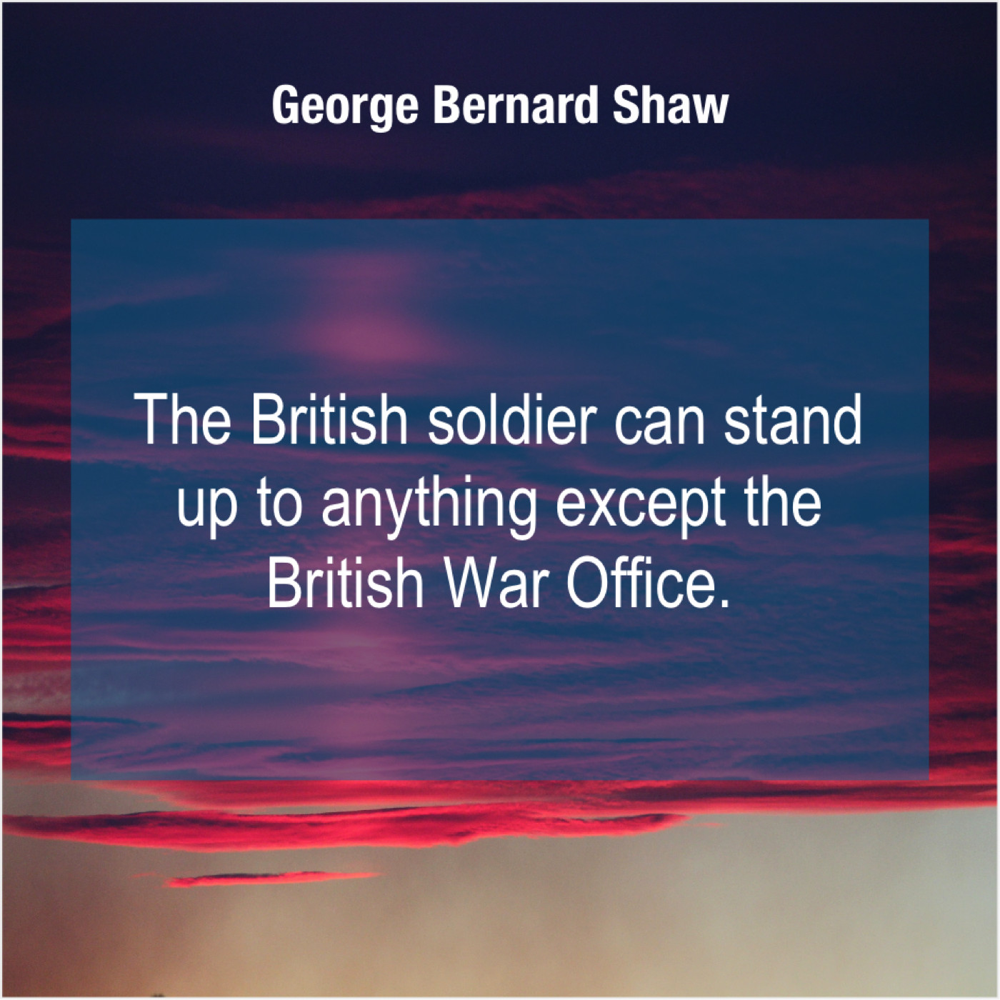 George Bernard Shaw George Bernard Shaw – The British soldier can stand… August 30, 2019 admin “The British soldier can stand up to anything except the British War Office.”-George Bernard Shaw