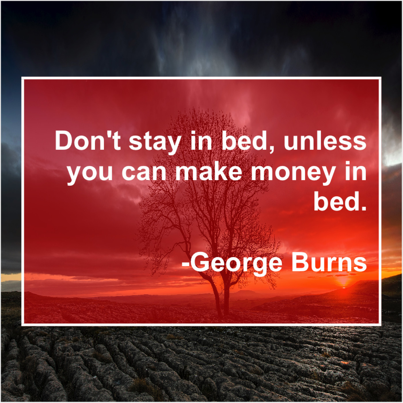 George Burns George Burns – Don’t stay in bed, unless… March 29, 2019 admin “Don’t stay in bed, unless you can make money in bed.”-George Burns