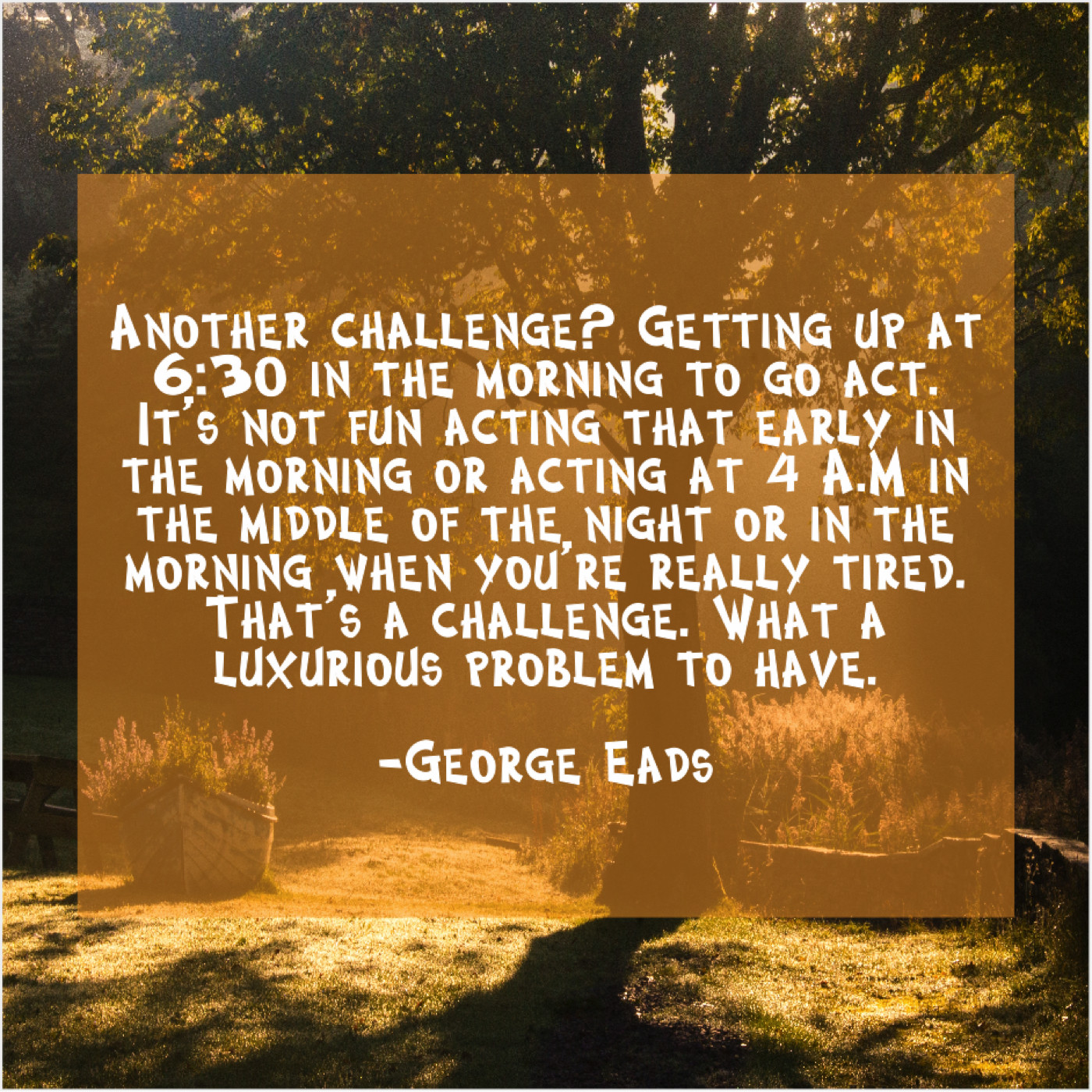 “Another challenge? Getting up at 6:30 in the morning to go act. It’s not fun acting that early in the morning or acting at 4 A.M in the middle of the night or in the morning when you’re really tired. That’s a challenge. What a luxurious problem to have.”